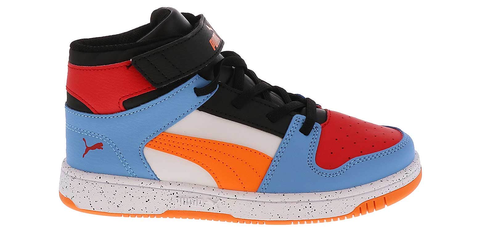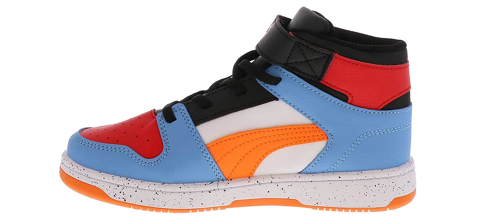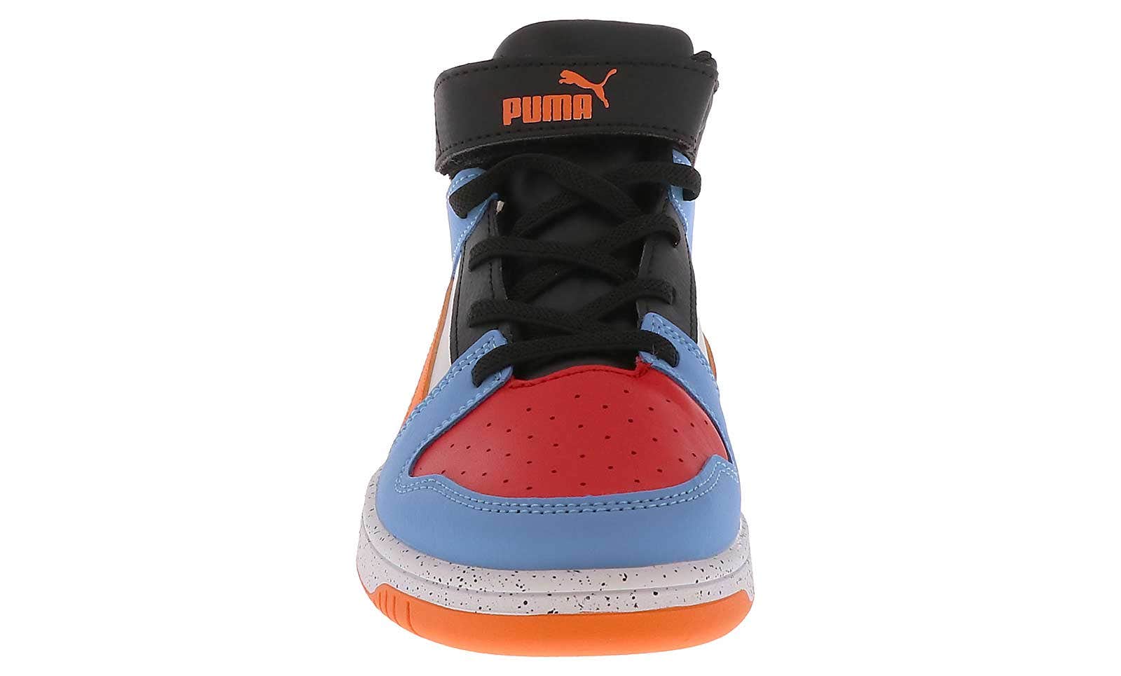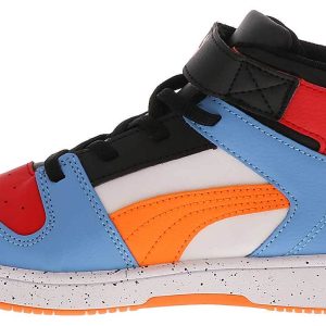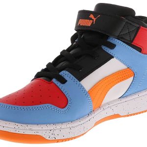 Let him rock a sporty style with the Puma Rebound Layup Light Speckle Youth Boys’ (11-3) Hi-Top Athletic Sneaker! This high top style features a hook and loop closure with elastic laces and a comfortable cushioned insole and padded ankle collar. The rubber outsole ensures traction and grip to enhance his active lifestyle. Effortlessly elevate his athletic look with the Puma Rebound Layup Light Speckle Youth Boys’ (11-3) Hi-Top Athletic Sneaker!