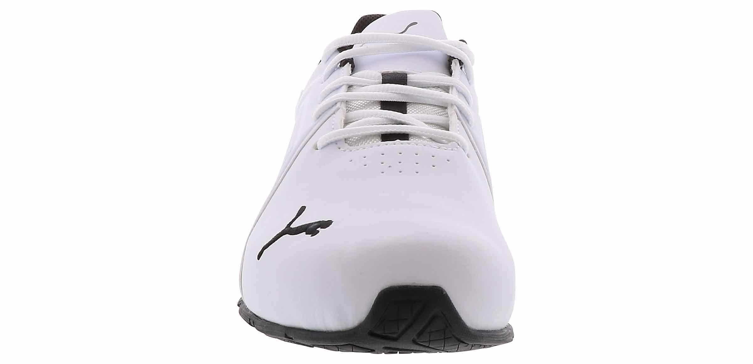 Take on every workout with a casual but comfortable style wearing the Puma Viz Runner Men’s Wide-Width Running Shoe! This style has a manmade leather upper with a lace-up closure and bold Puma cat logos. With the cushioned insole and padded lining, your foot will have extra support to run the extra miles, while the durable outsole delivers traction on every surface. The Puma Viz Runner Men’s Wide-Width Running Shoe will get you through difficult workouts with ease.