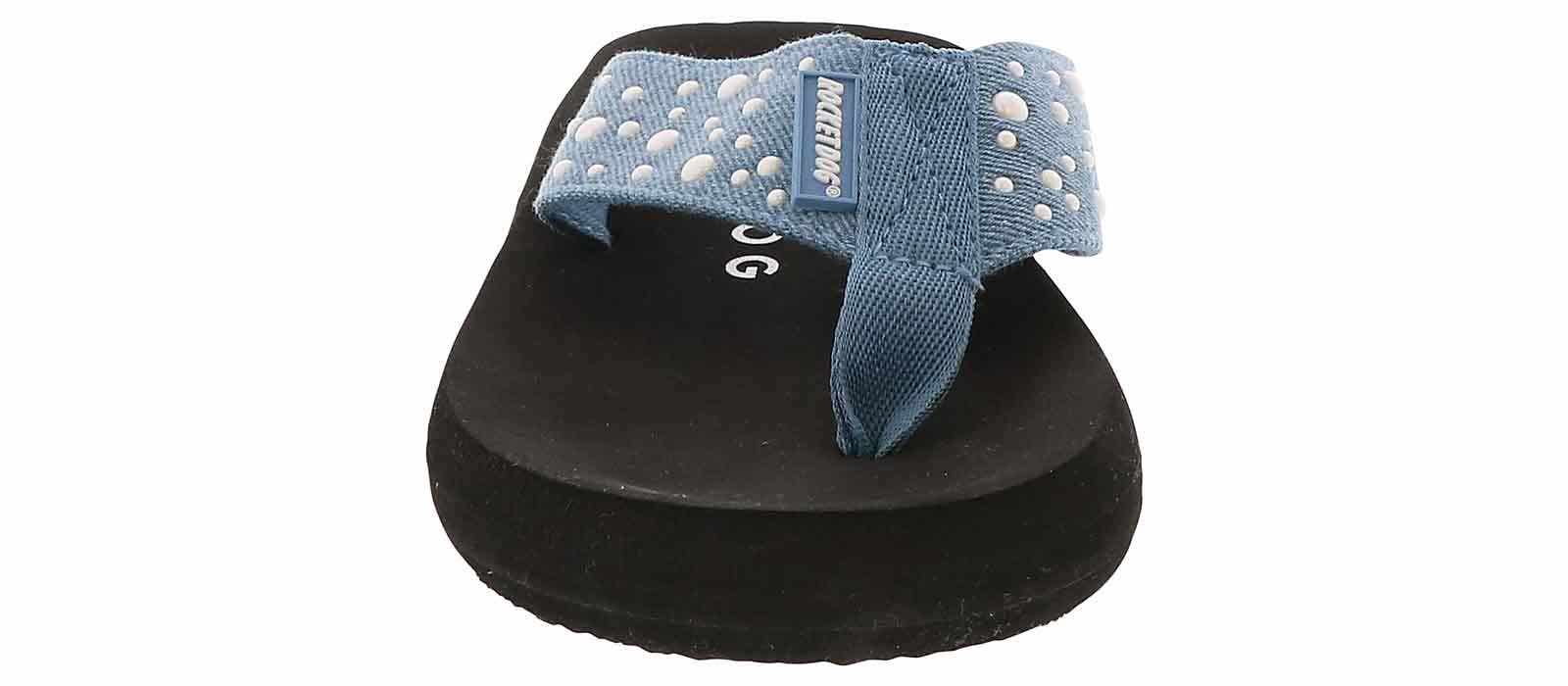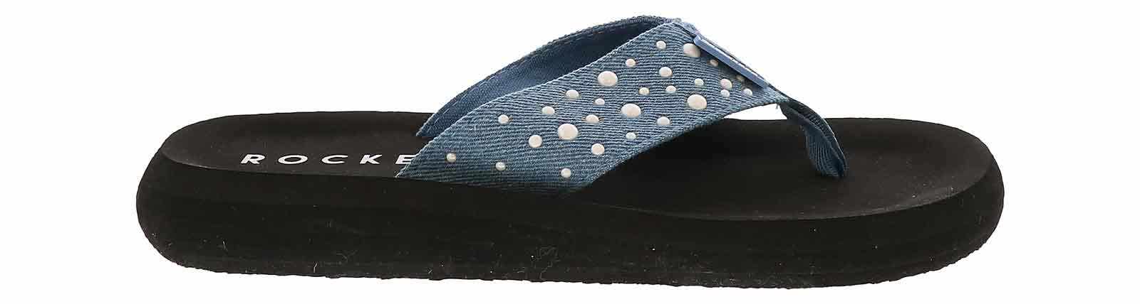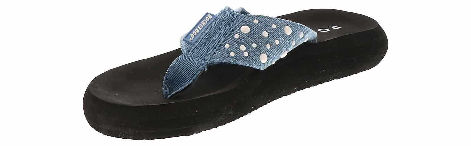 Stay casual with the Rocket Dog Spotlight Denim Pearl Women’s Thong Sandal! The soft synthetic upper will keep your foot comfortable and in place. The footbed is cushioned for support and the lightweight outsole will give you extra stability. You’ll love wearing the Rocket Dog Spotlight Denim Pearl Women’s Thong Sandal!