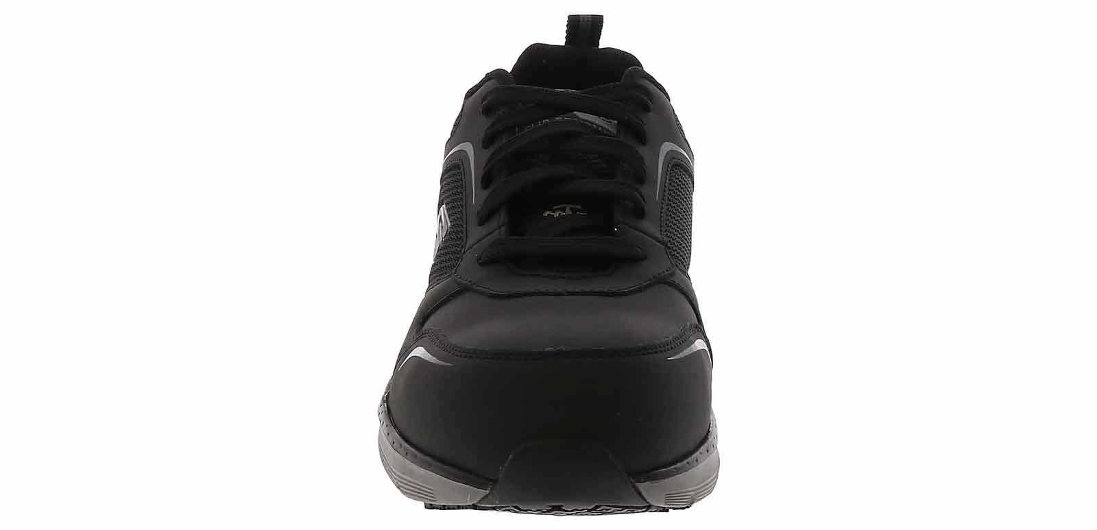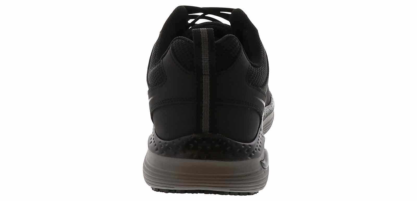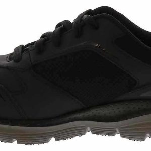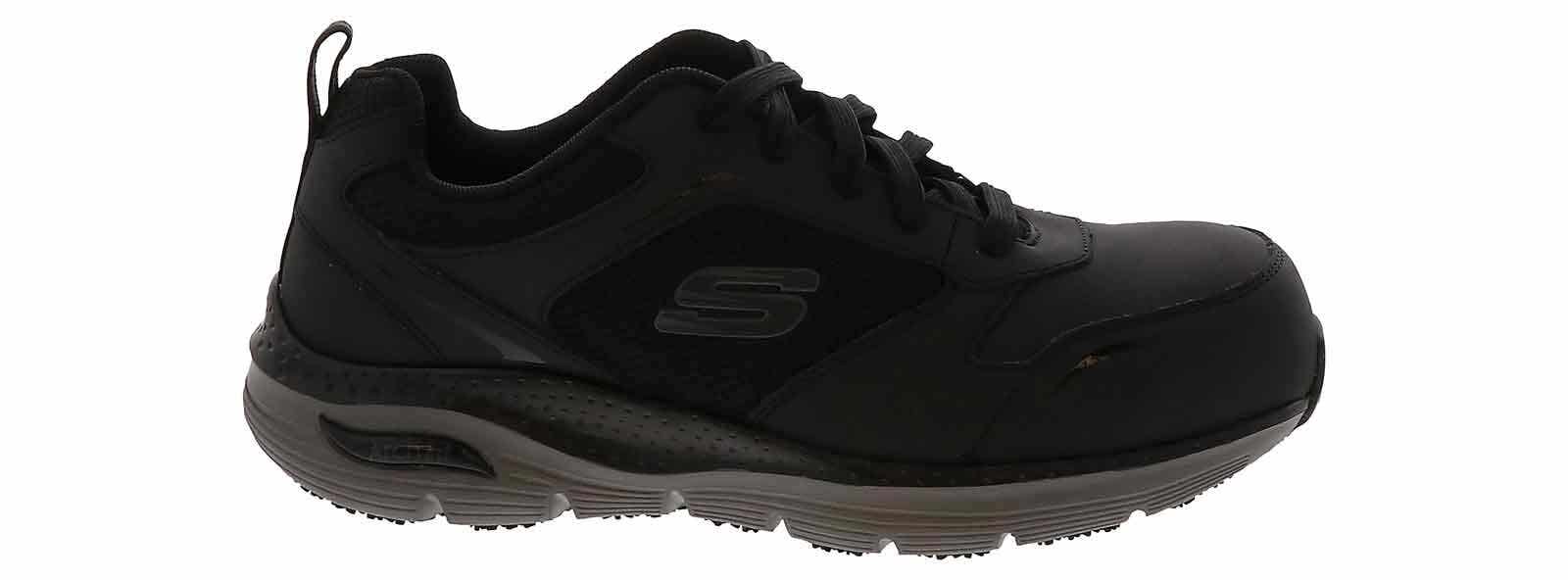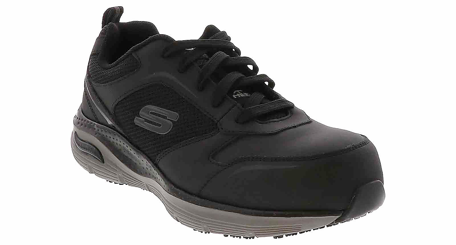 Durable comfort and support delivered in these Skechers Arch Fit Angis Men’s Wide-Width Composite Toe Work Sneaker. This lace-up work design offers slip resistance and a removable Arch Fit cushioning insole to reduce shock and increase weight dispersion. This work sneaker has a composite nonmetallic safety toe front, is Electrical Hazard approved for safety, and it meets Impact & Compression standards.