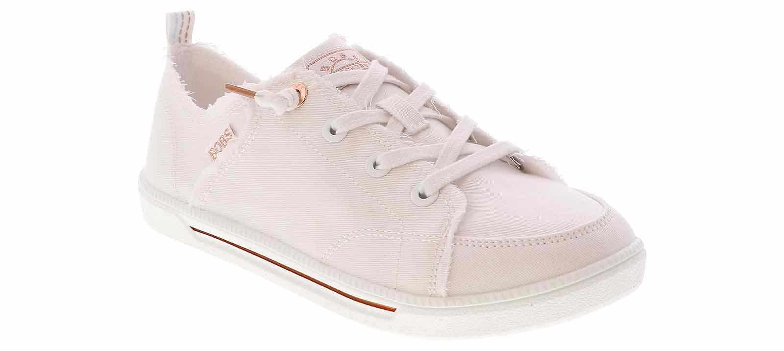 Combine effortless style and comfort while wearing the Skechers Bobs B Cute 2.0 Women’s Casual Shoe! This vegan slip-on shoe features a soft canvas upper with frayed detailing. The memory foam insole is cushioned to support your every step for the ultimate comfort. This shoe was made for long-lasting wear by its machine washable feature and durable outsole that also provides flexible traction. The Skechers Bobs B Cute 2.0 Women’s Casual Shoe will keep your feet comfortable!
