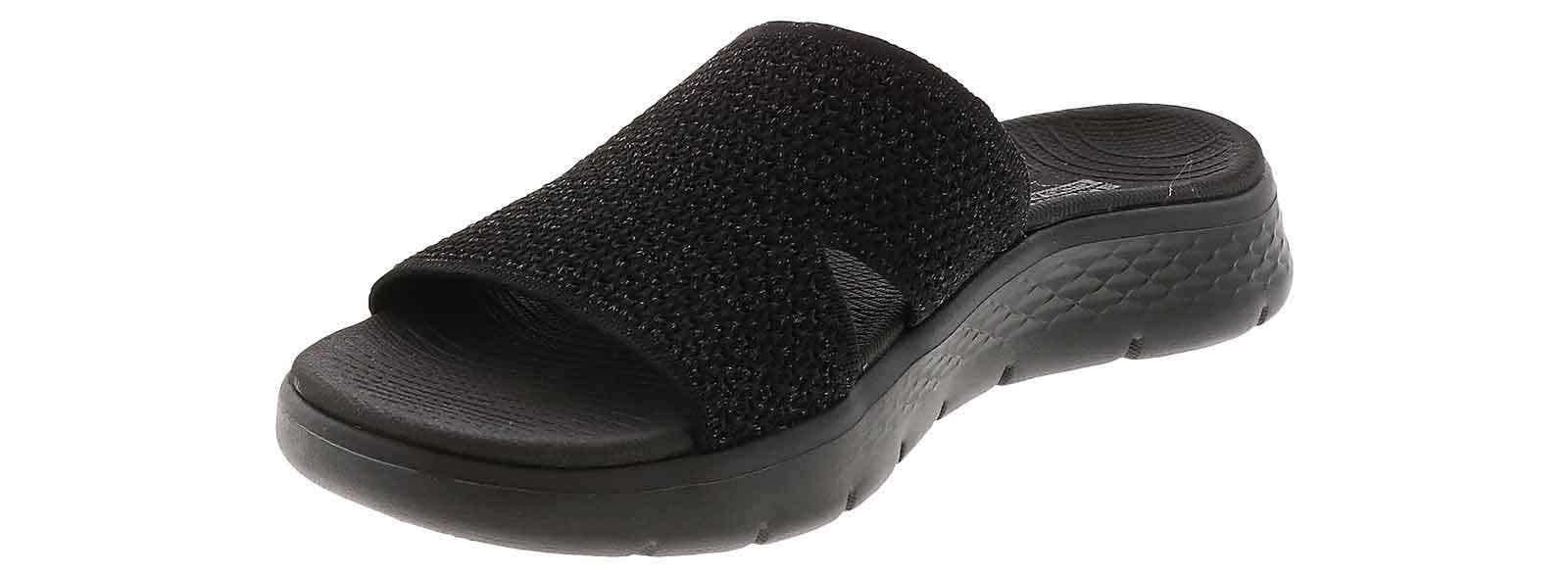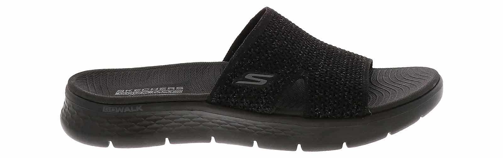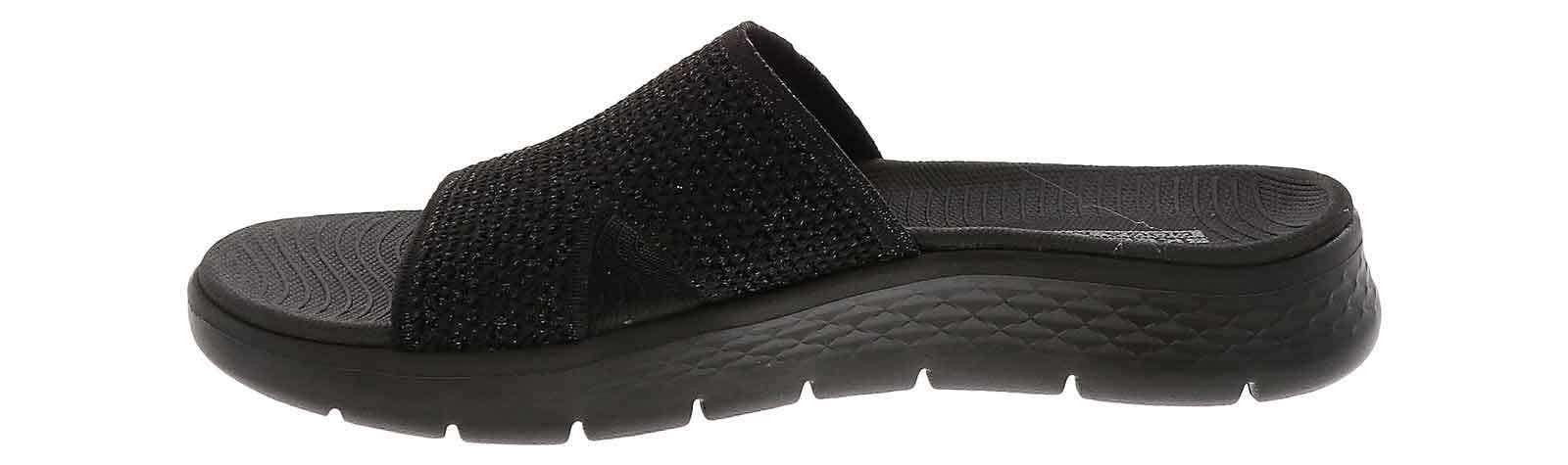 Step into comfort with the Skechers GOWALK Flex Timeless Women’s Sandal! These casual and lightweight slides, with a black mesh-band, add a touch of style to any outfit, while the cushioned footbed ensures all-day comfort. A durable rubber outsole and a 1.5-inch platform add traction and boost to every step. The knit mesh upper has a hint of shimmer that with make a stylish statement while staying casual when you wear the Skechers GOWALK Flex Timeless Women’s Sandal!