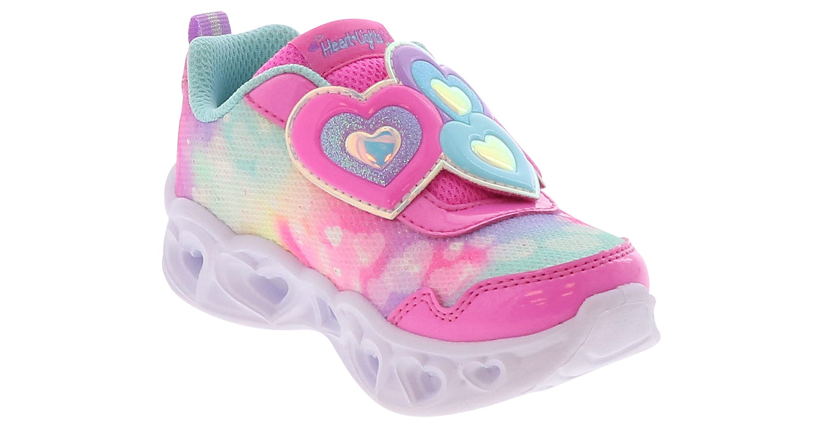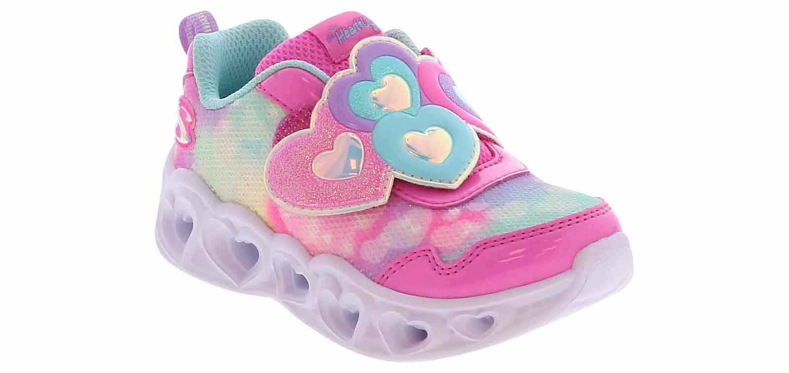 Watch her world light up with every step when she wears the Skechers Heart Lights Toddler Girls’ (5-10) Athletic Shoe! This style has a hook-and-loop strap closure to give her a secure fit, while the cushioned insole and lightweight outsole ensure all-day comfort. She will fall in love with the Skechers Heart Lights Toddler Girls’ (5-10) Athletic Shoe!