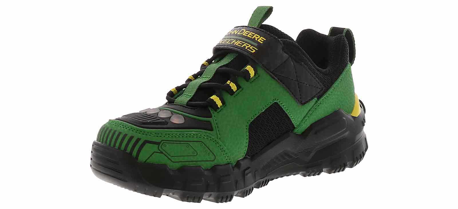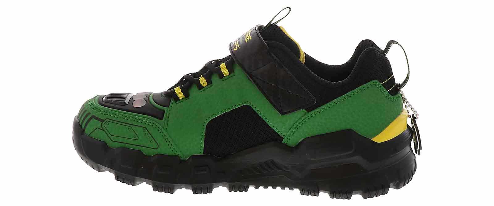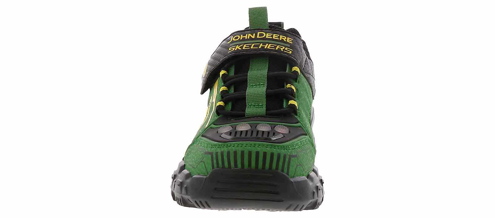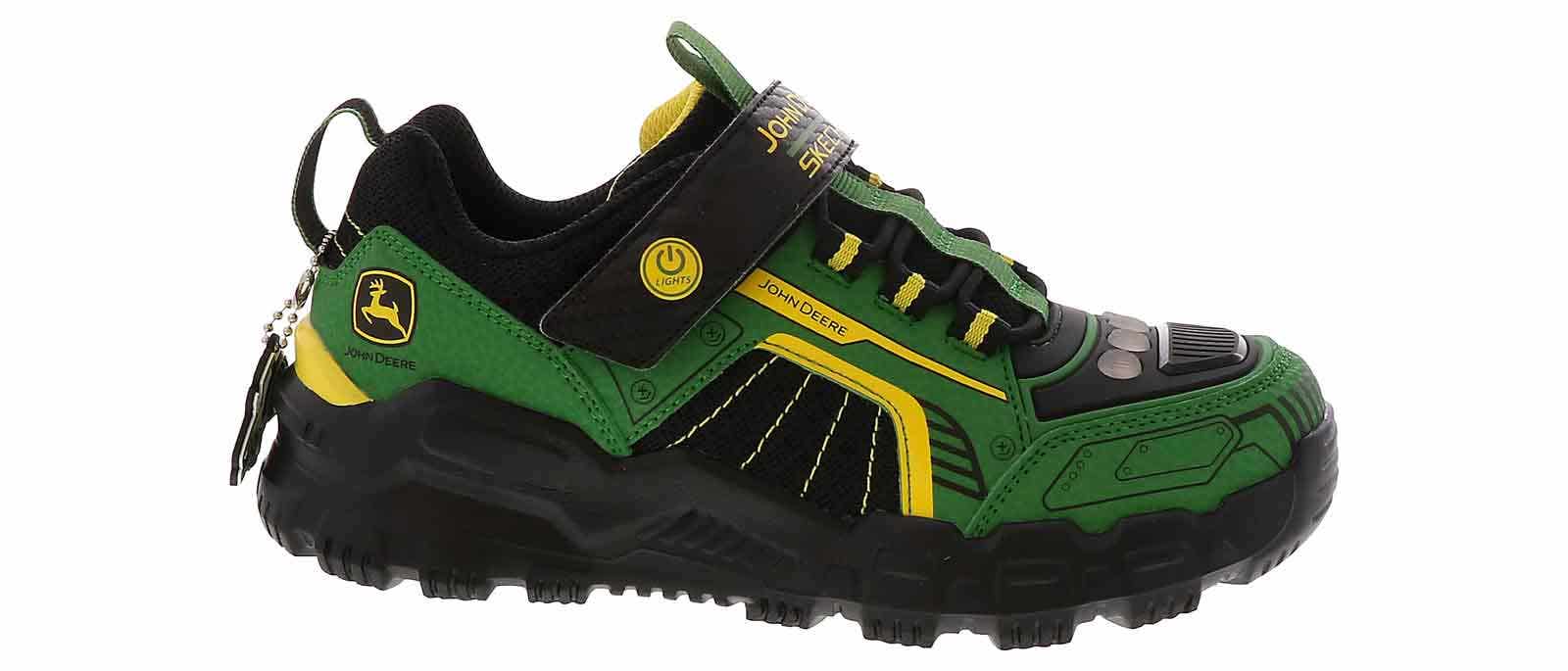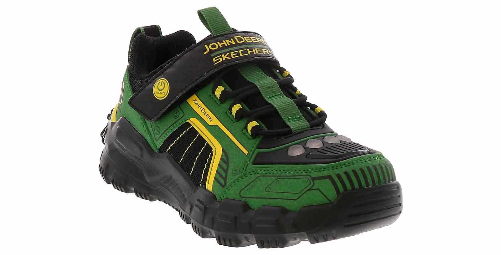 Step, go, and bring on the lights with a fun pair of Skechers John Deere Adventure Track Youth Boys’ (11-3) Light Up Running Shoe. This lightweight sporty design features a mesh and synthetic upper, light up feature, plus a cushioned Skechers Air-Cooled Memory Foam insole. He will be shining bright in his Skechers John Deere Adventure Track Youth Boys’ (11-3) Light Up Running Shoe.