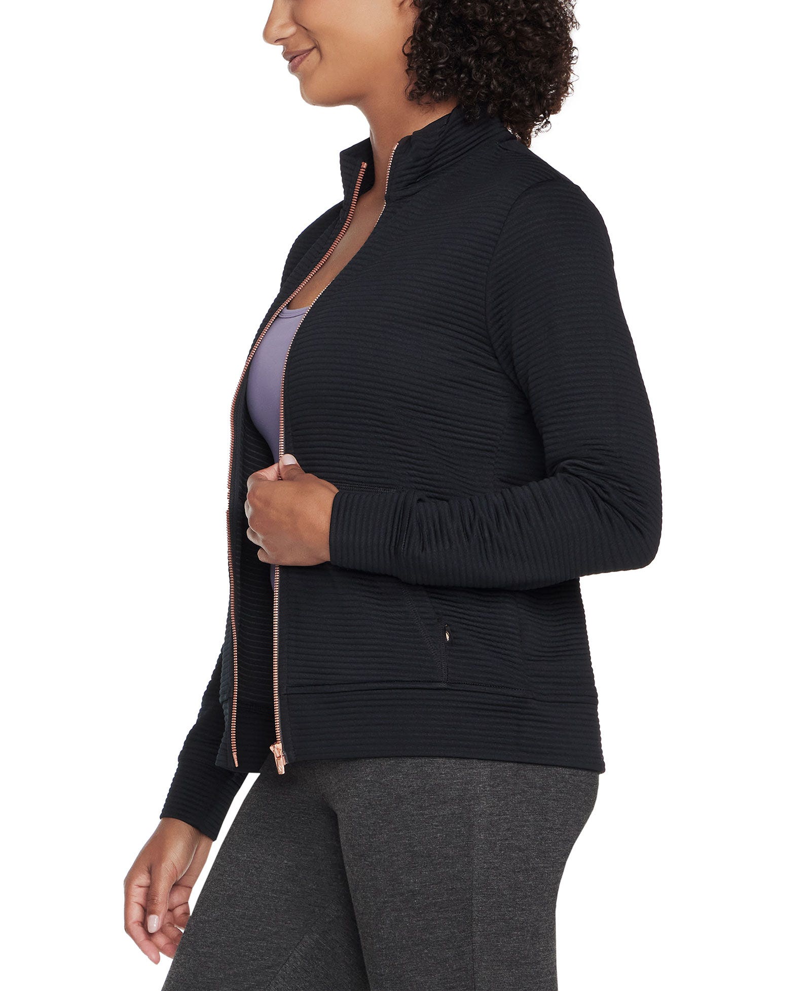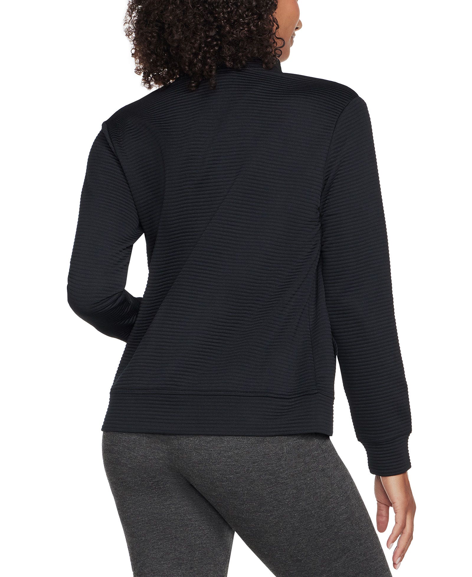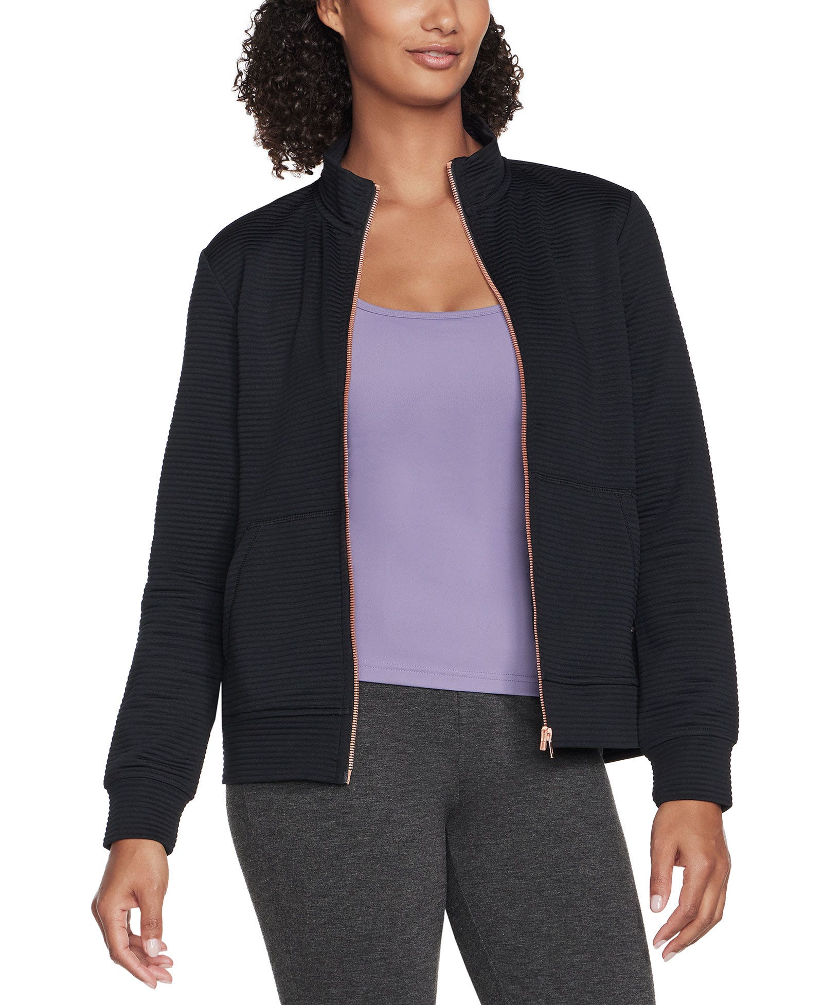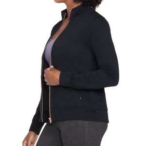 Functional style and plush soft comfort combine in everyday versatility with the Skechers Ottoman Women’s Jacket in Black. This knit jacket features a soft Skech-Sweats soft brushed fleece fabric, mock neck with a polished metallic zip front, long sleeves, and a split kangaroo pocket.