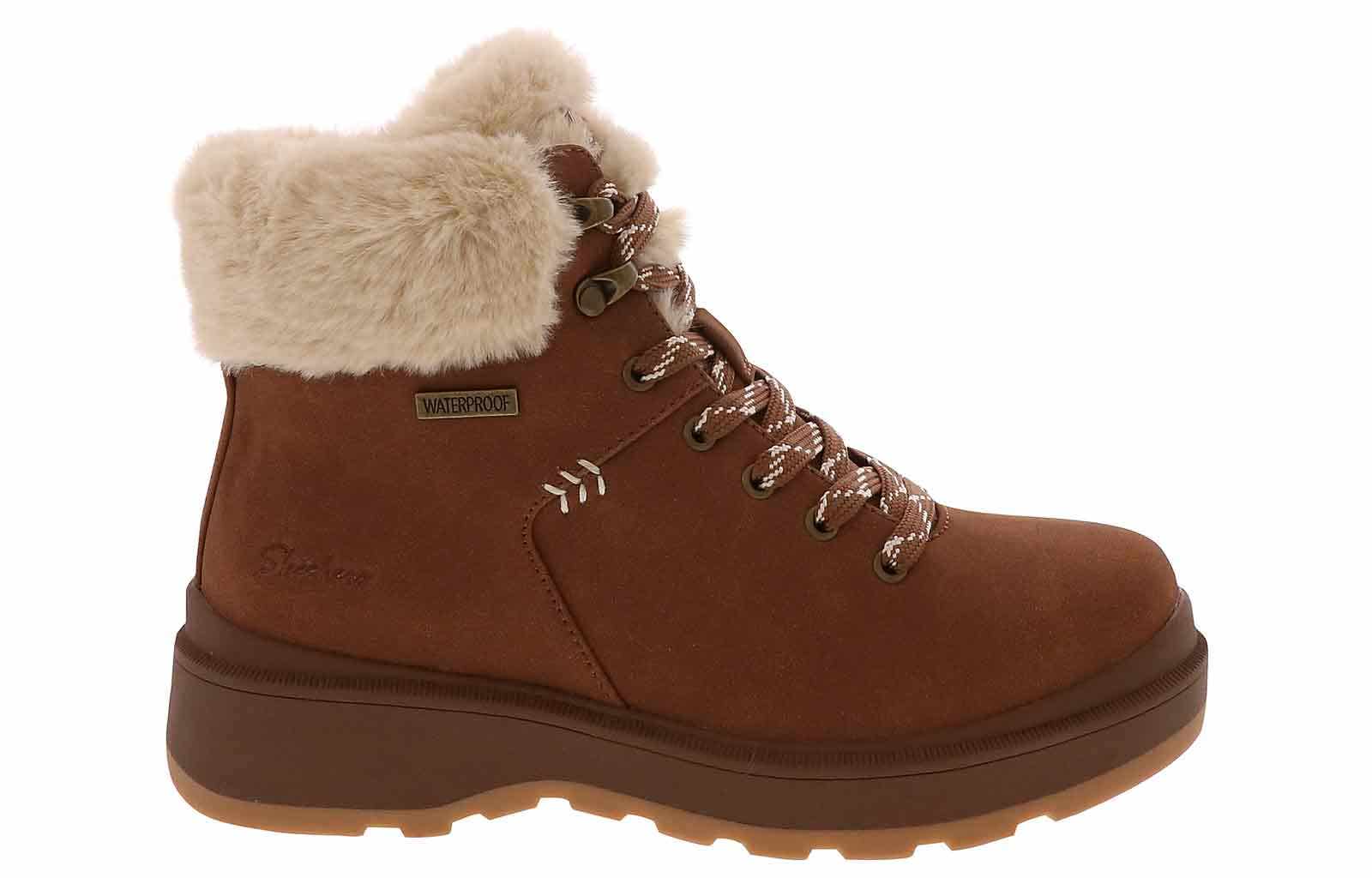 Step with confidence in the Skechers Park City Hiker Women’s Fashion Boot! This lace-up boot features a faux fur collar and a waterproof synthetic upper to keep you feeling cozy. The memory foam insole is lined with faux fur for a comfortable fit. Elevate your shoe collection with the Skechers Park City Hiker Women’s Boot!