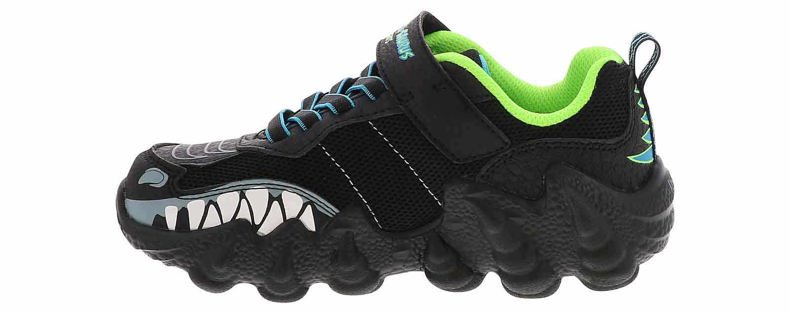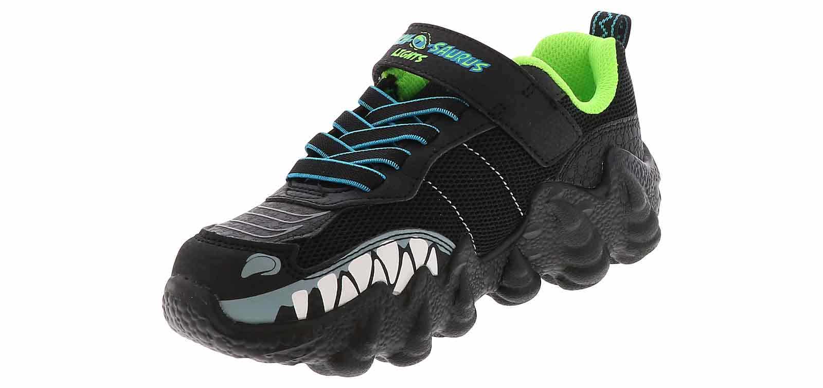 Let him step out with a bolt of comfort with the Skechers Skech-O-Saurus Lights 2.0 Youth Boys’ (11-3) Light Up Running Shoe. This sporty shoe features a mesh and synthetic upper with a light-up midsole. The elastic laces and hook-and-loop closure make for a comfortably perfect fit. He will love his new Skechers Skech-O-Saurus Lights 2.0 Youth Boys’ (11-3) Light Up Running Shoe!