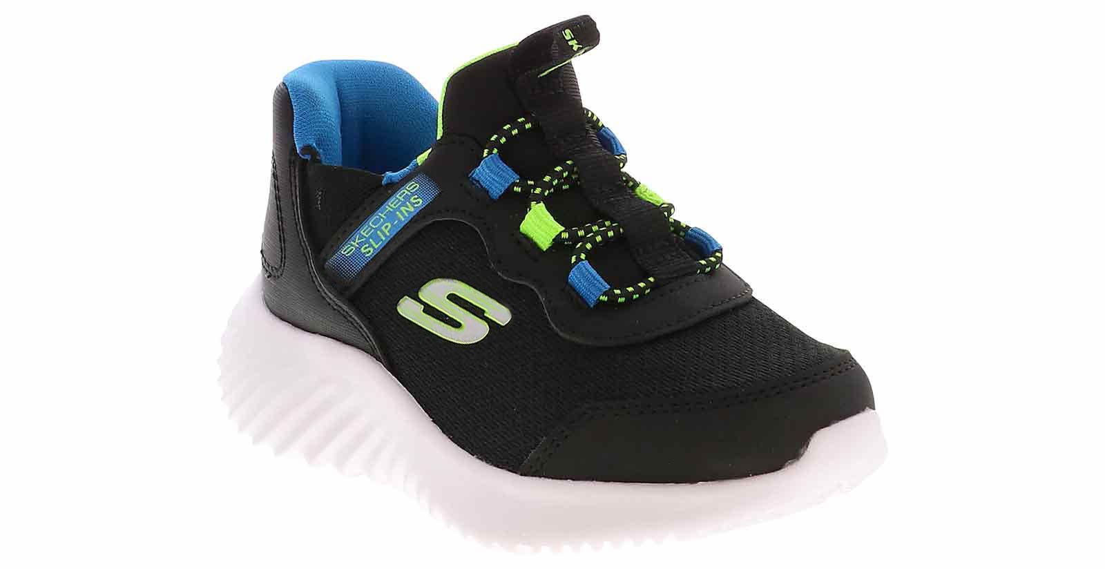 The Skechers Slip-In Bounder Toddler Boys’ (5-10) Running Shoe is perfect for your busy little one! This slip-on shoe features elastic laces and a mesh upper. The air-cooled memory foam insole adds to the comfortable fit, while the durable outsole is supportive and provides traction. He will brighten everyone’s day while wearing the Skechers Slip-In Bounder Toddler Boys’ (5-10) Running Shoe!