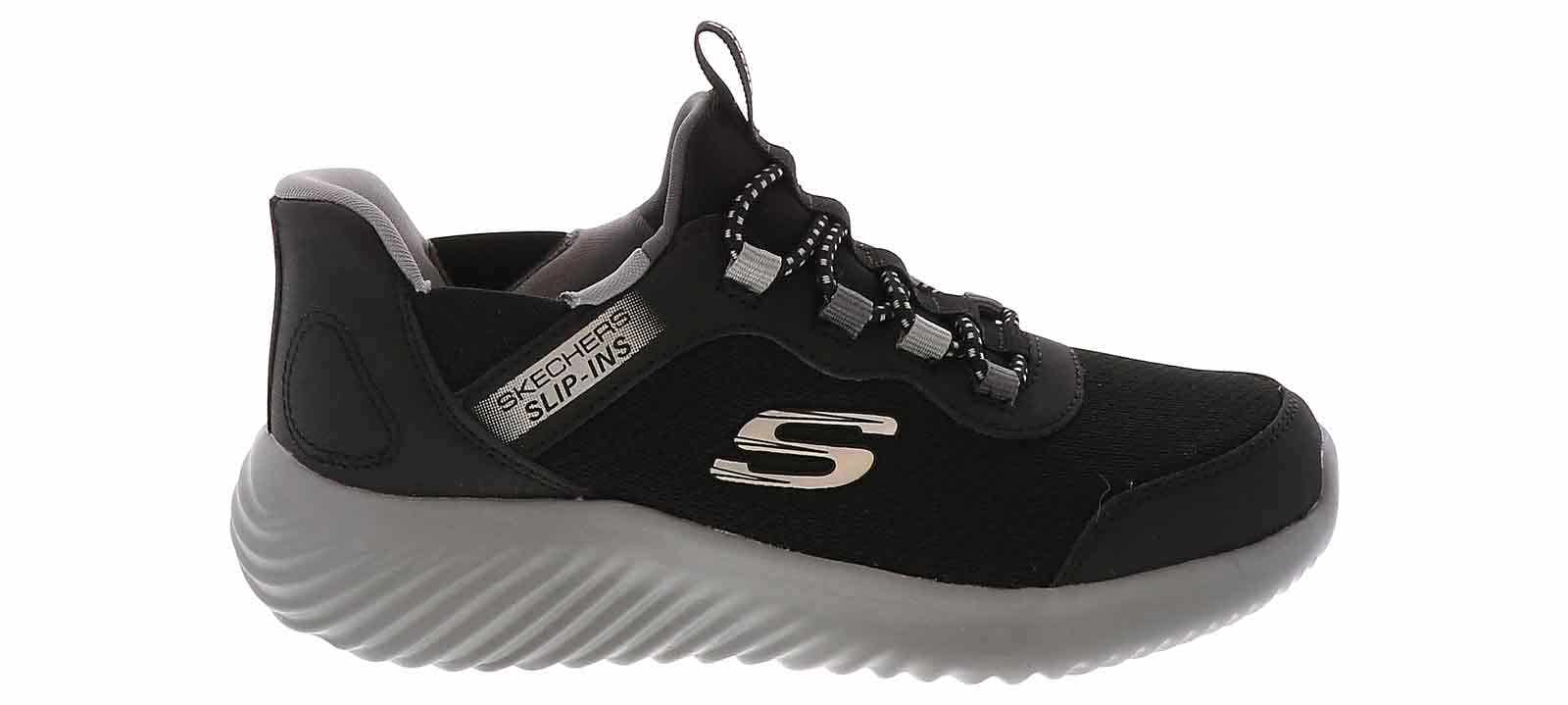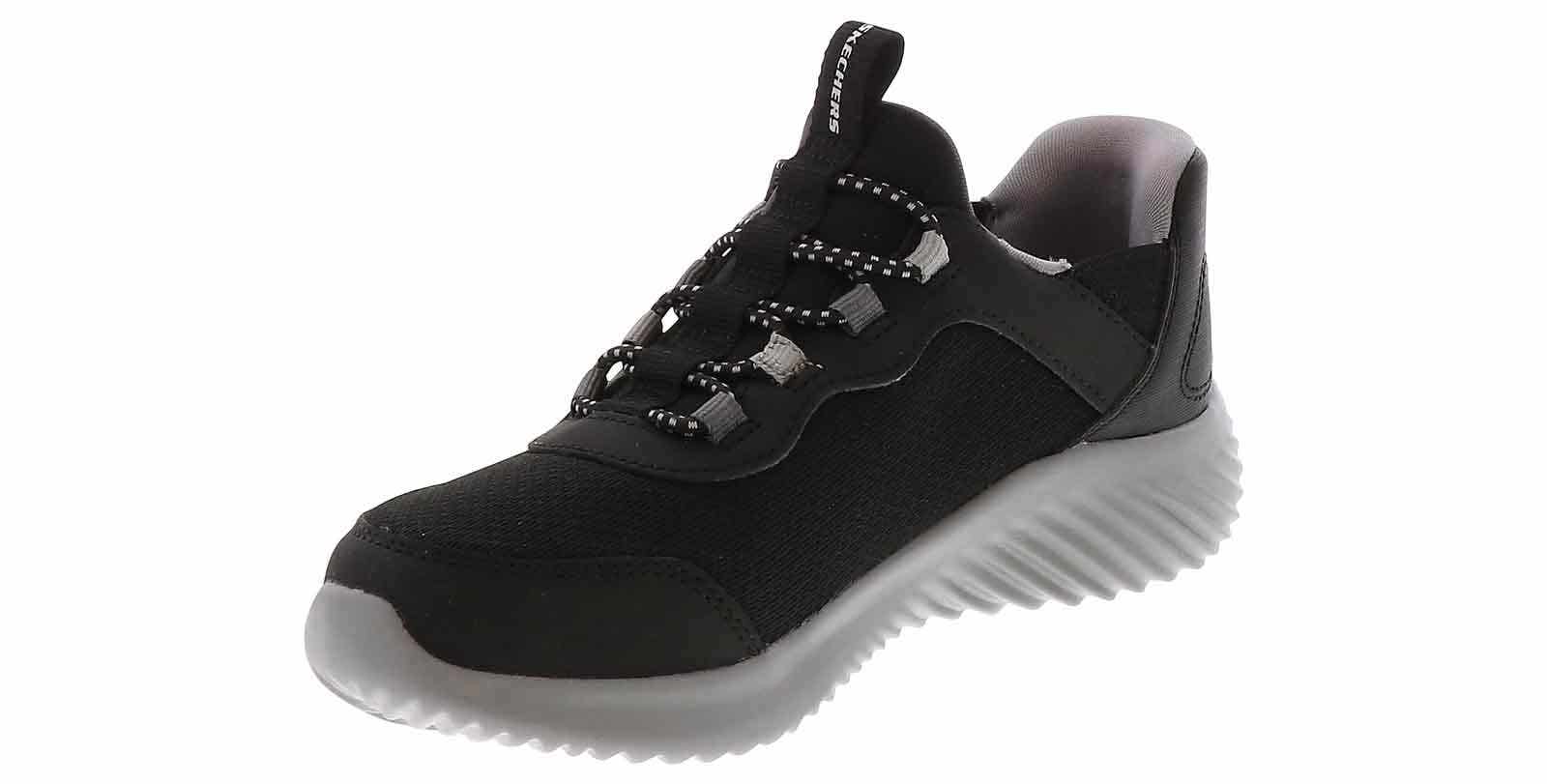 The Skechers Slip-Ins Bounder Youth Boys’ (11-5) Running Shoe is perfect for your busy little one! This slip-on shoe features elastic laces and a mesh upper. The air-cooled memory foam insole adds to the comfortable fit, while the durable outsole is supportive and provides traction. He will brighten everyone’s day while wearing the Skechers Slip-Ins Bounder Youth Boys’ (11-5) Running Shoe!