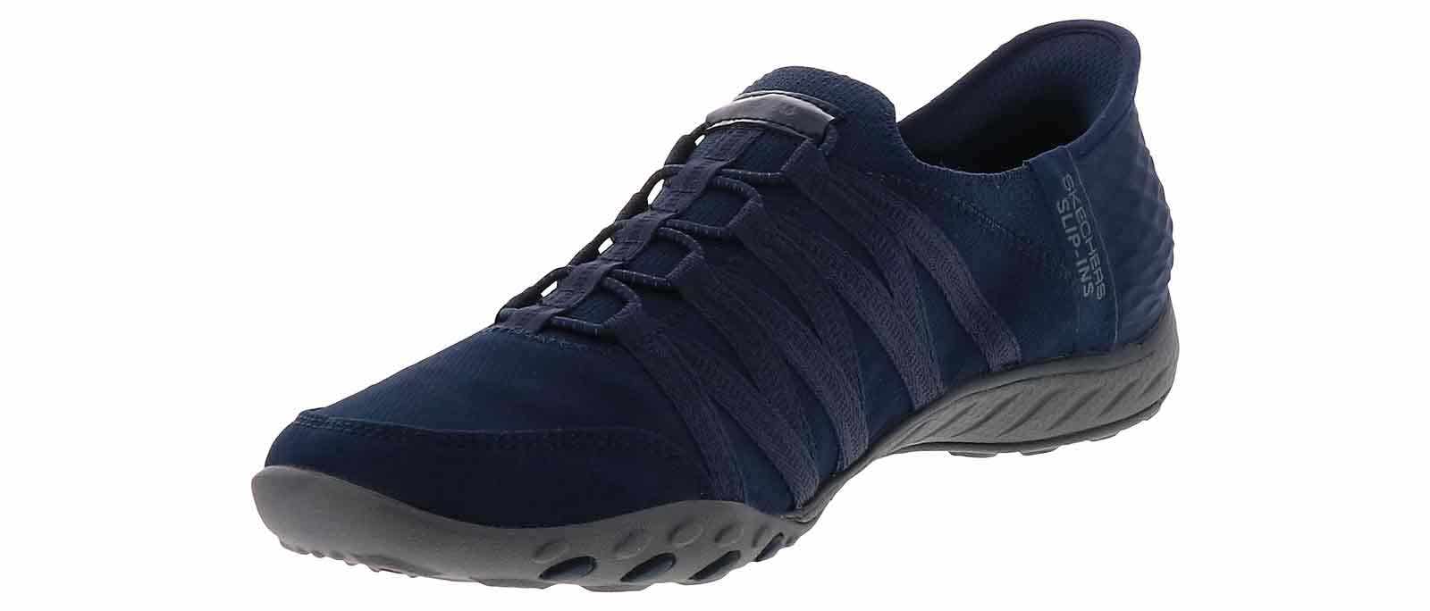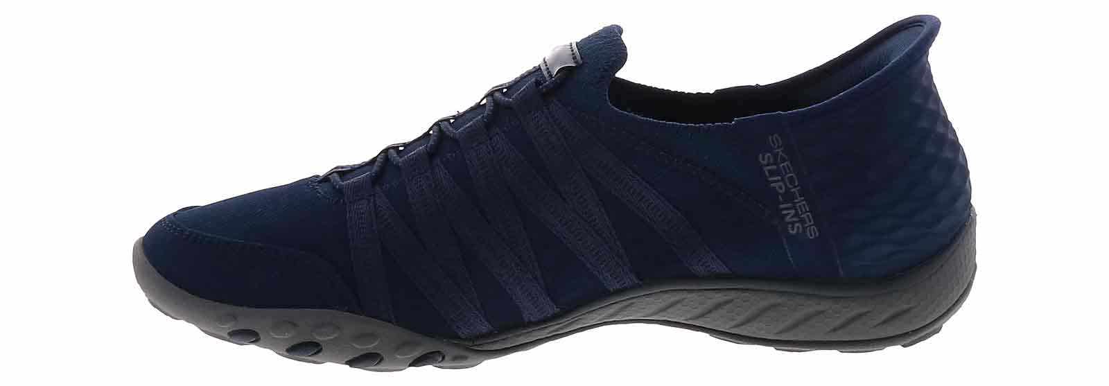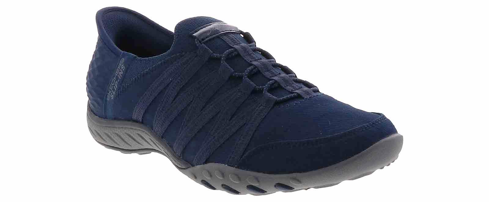 Experience unmatched comfort and effortless style with the Skechers Slip-Ins Breathe Easy Women’s Comfort Shoe! This style exudes fashion-forward simplicity with its easy on-off slip-on closure and a cool memory foam insole. The rubber outsole ensures reliable traction and grip, while the padded heel provides additional support. Step into the blissful comfort you deserve while wearing the Skechers Slip-Ins Breathe Easy Women’s Comfort Shoe!