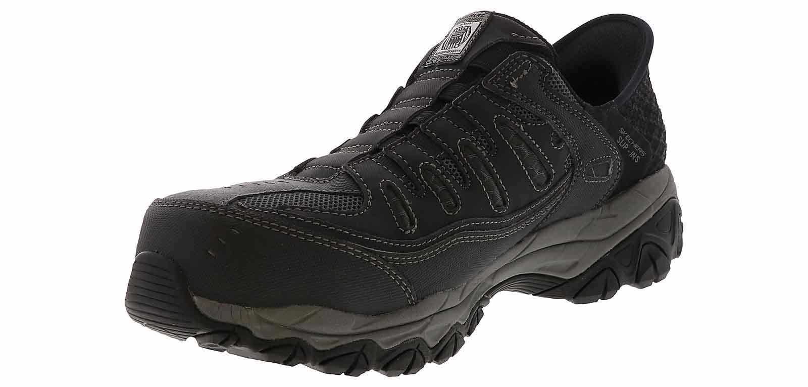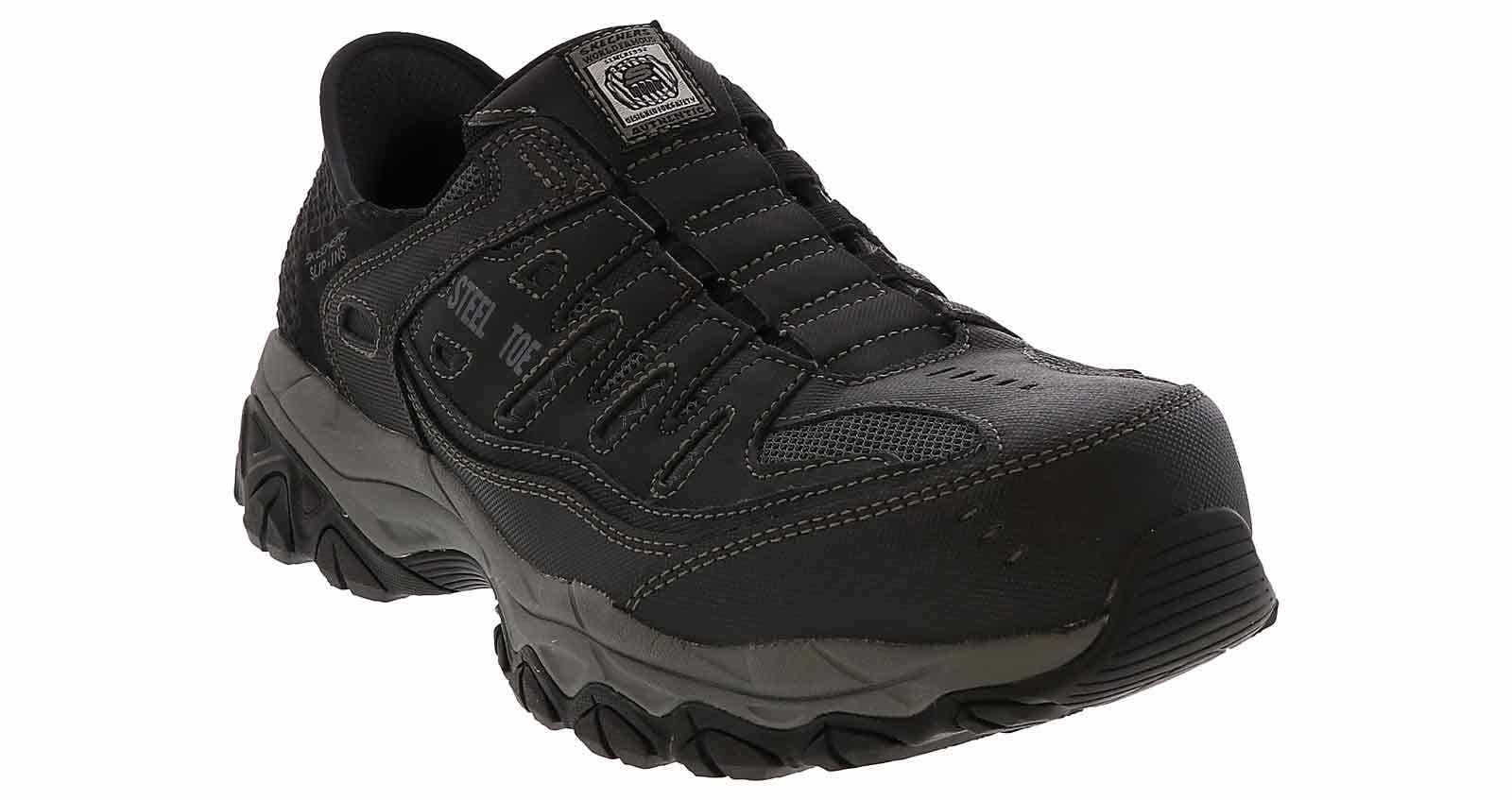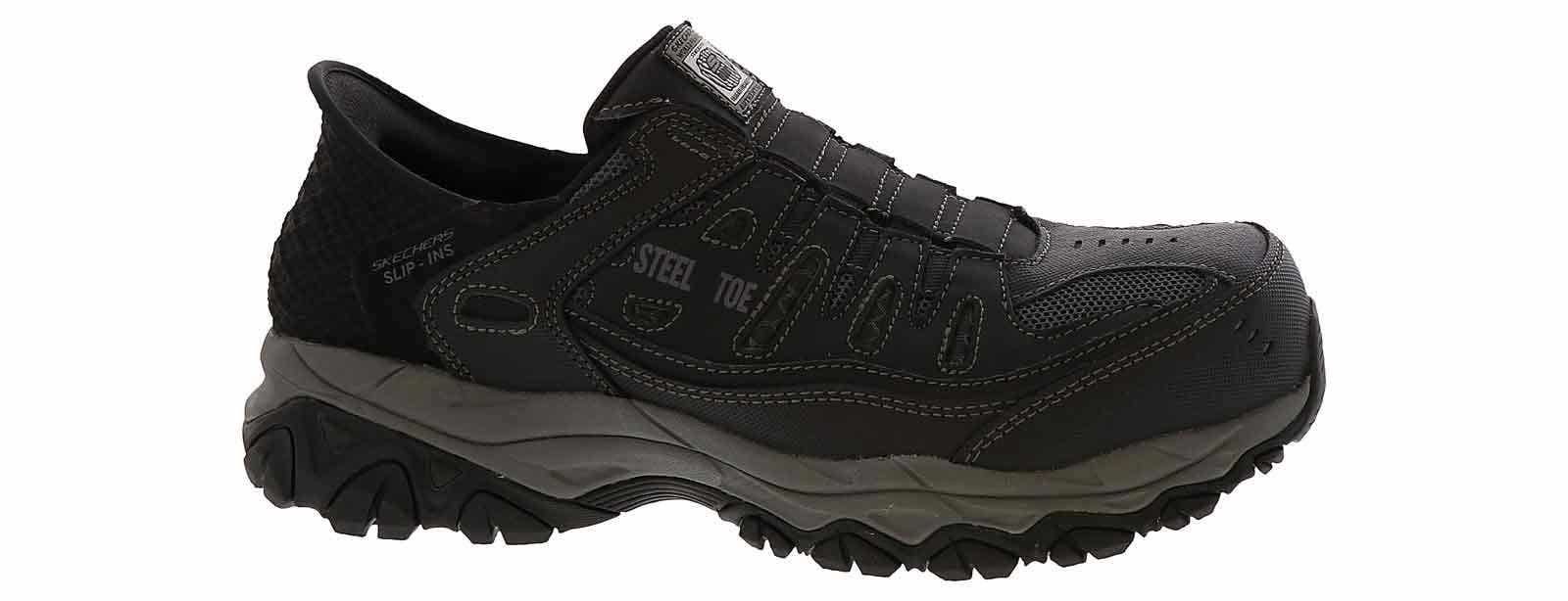 Make a safe and comfortable choice with the Skechers Slip-Ins Cankton Faison Men’s Steel Toe Work Shoe! This slip-on shoe features a memory foam insole for a comfortable fit. The steel toe and electrical hazard protection will keep you safe throughout the work day. Embrace your style with the Skechers Slip-Ins Cankton Faison Men’s Steel Toe Work Shoe!