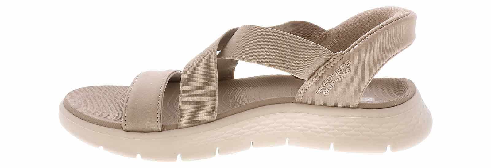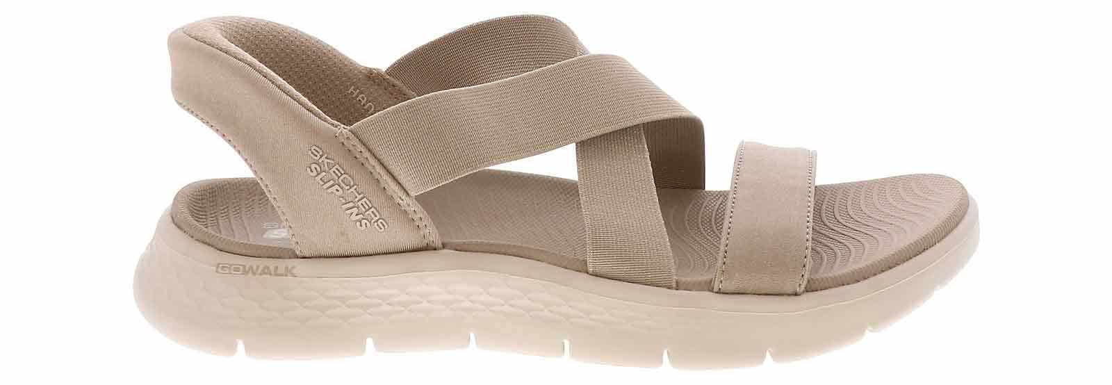 The Skechers Slip-Ins GOWALK Flex Women’s Sport Sandaloffers a perfect blend of style and comfort. With its easy slip-on design, it makes wearing your favorite sport sandal effortless. The elastic upper and padded back heel ensure a secure and comfy fit, while the cushioned insole provides all-day comfort. Plus, the rubber outsole ensures a steady step, making it the ideal choice for both casual outings and active days. Enjoy a perfect balance of comfort and convenience with the Skechers Slip-Ins GOWALK Flex Women’s Sport Sandal !