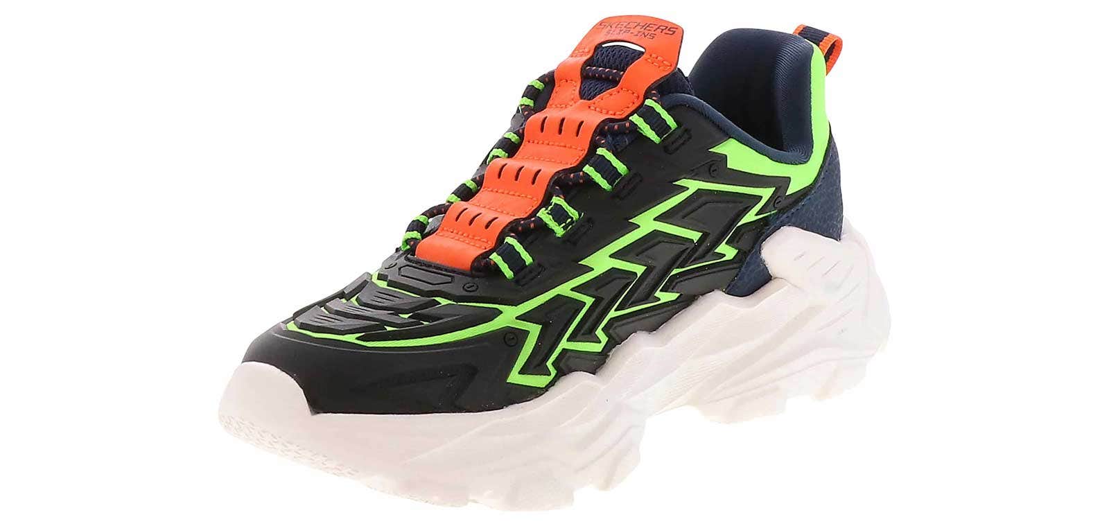 The Skechers Slip-Ins Skech-Bots 2.0 Youth Boys’ (12-3) Running Shoe is perfect for your busy little one! This slip on shoe features elastic laces and a synthetic upper. The air cooled memory foam insole adds to the comfortable fit, while the lightweight outsole is supportive and provides traction. He will brighten everyone’s day while wearing the Skechers Slip-Ins Skech-Bots 2.0 Youth Boys’ (12-3) Running Shoe!