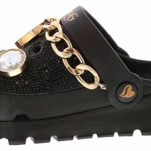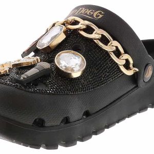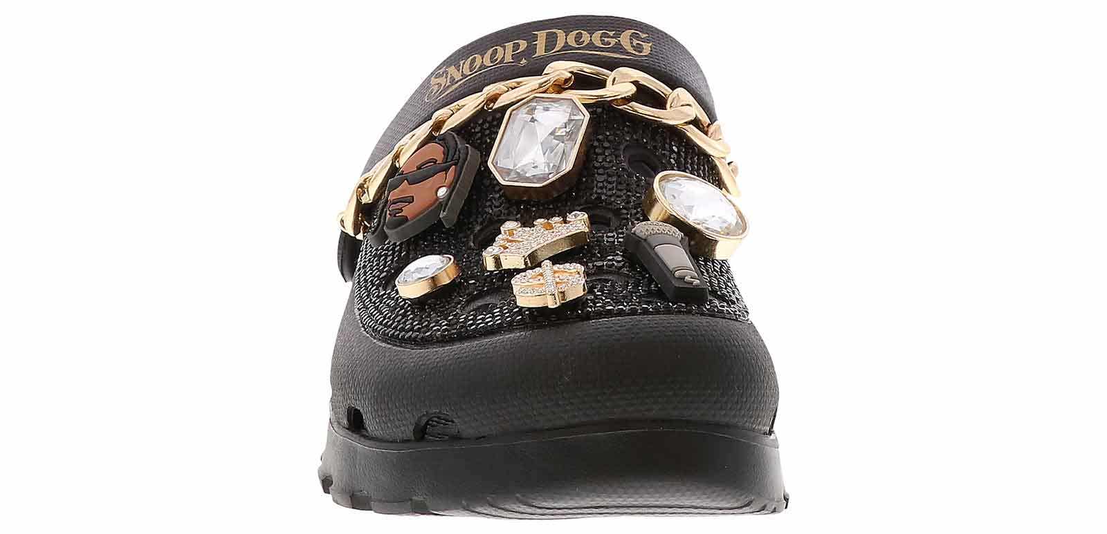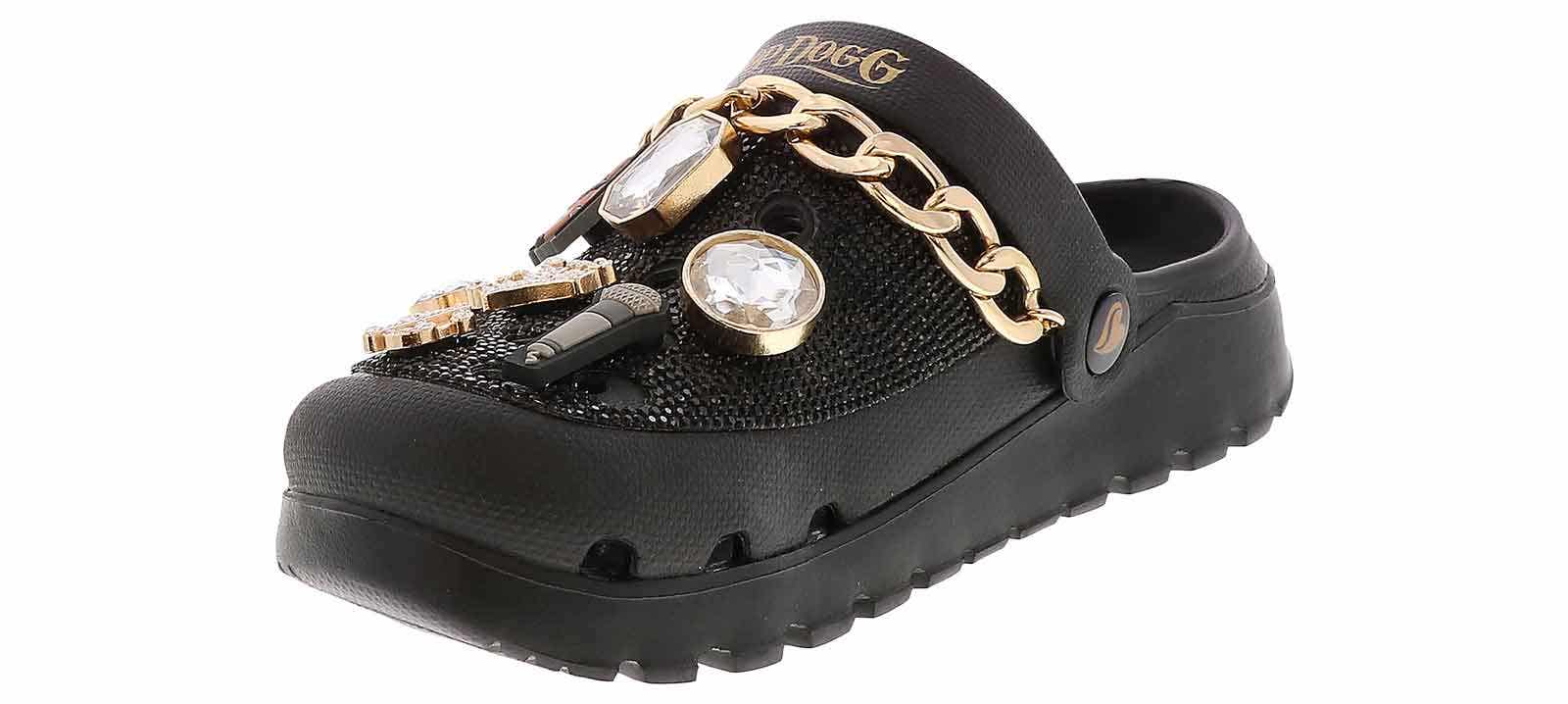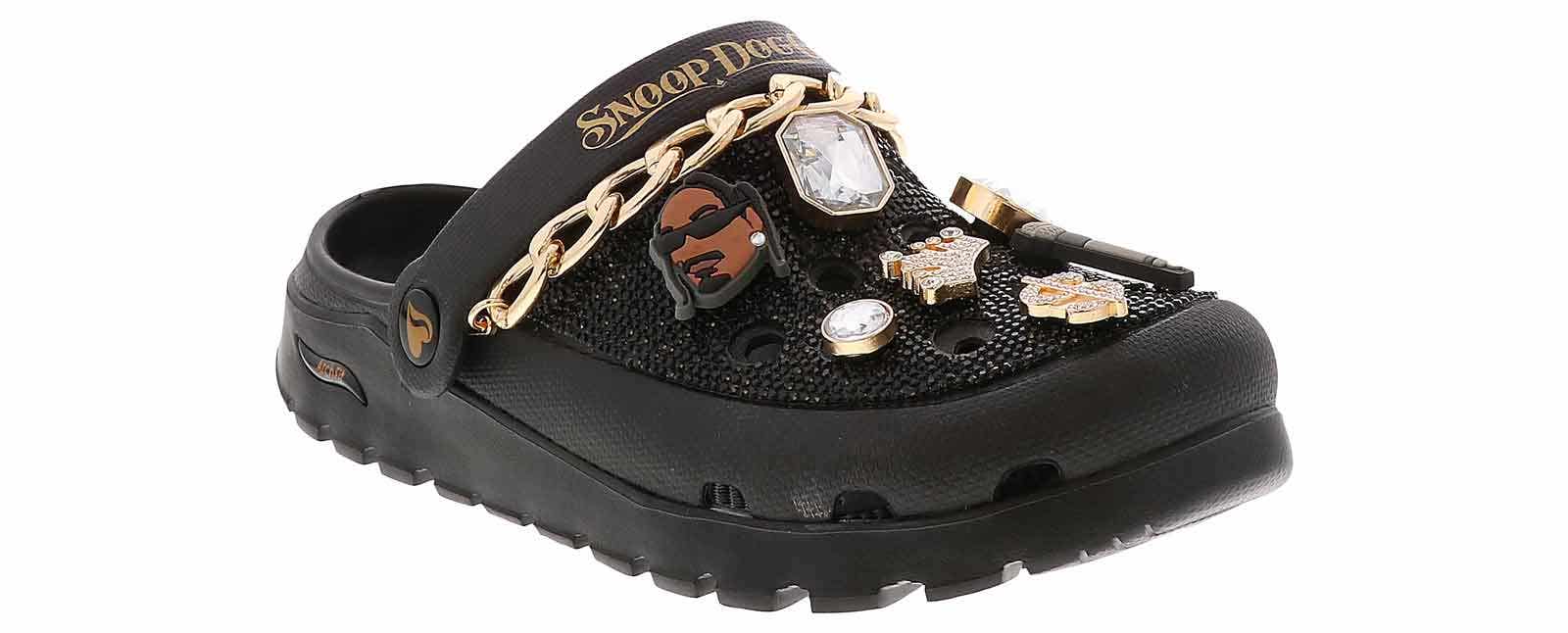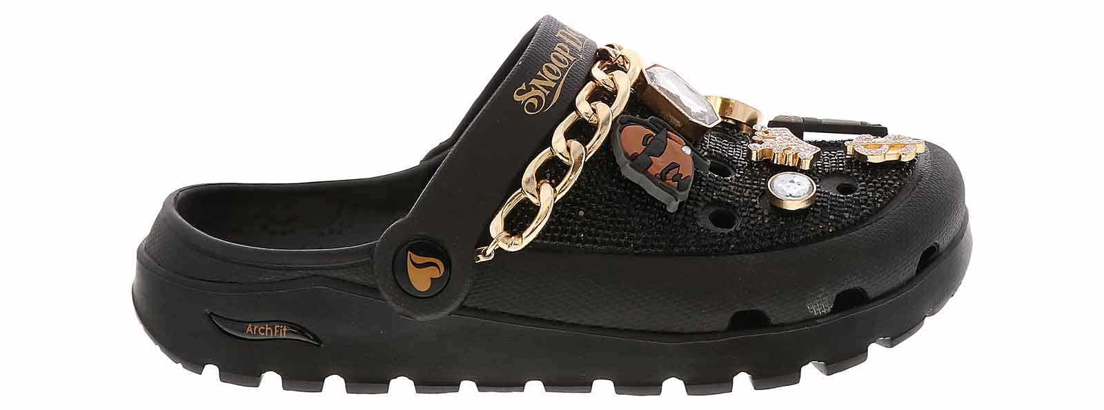 Slip into another level of comfort and glam with the Skechers Snoop Dogg Arch Fit Footsteps Women’s Casual Clog. This head-turning fashion clog features a rhinestone-embellished EVA upper with gold chain detail, removable Snoop-themed charms, and a contoured Arch Fit footbed. Rock your everyday life in the Skechers Snoop Dogg Arch Fit Footsteps Women’s Casual Clog!