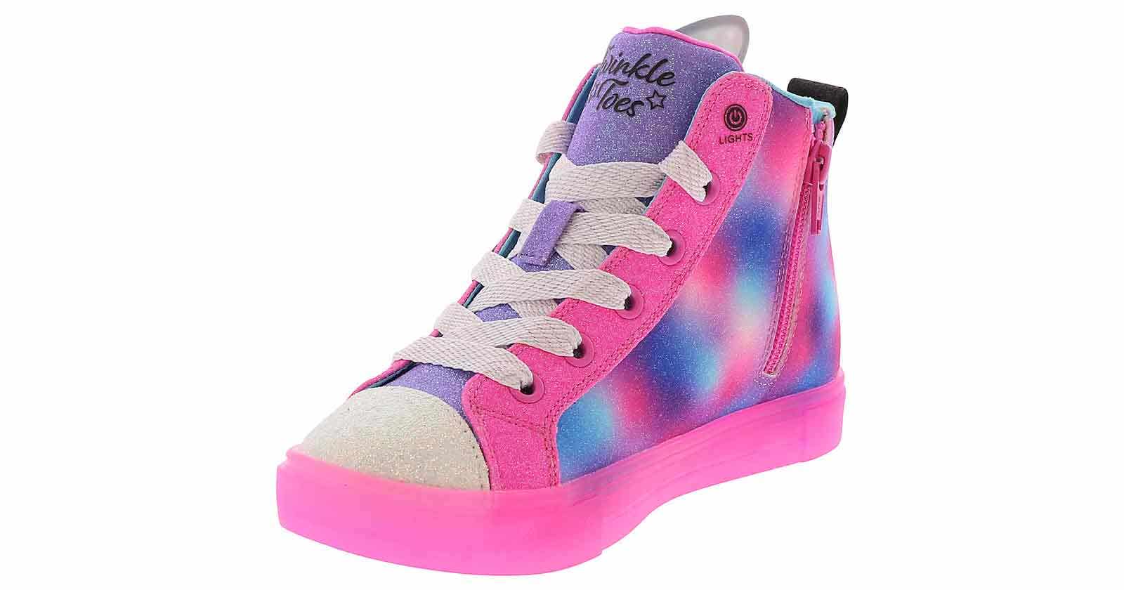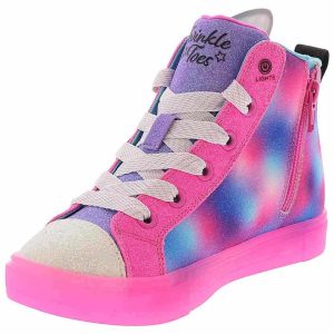 She will love walking around in the Skechers Twinkle Sparks Ice Youth Girls’ (11-3) Light Up Hi-Top Sneaker! This lace-up sneaker features a zipper to give her an extra secure fit. The light-up, durable outsole and cushioned insole will keep her supported during play time. Let her shine bright with the Skechers Twinkle Sparks Ice Youth Girls’ (11-3) Light Up Hi-Top Sneaker!