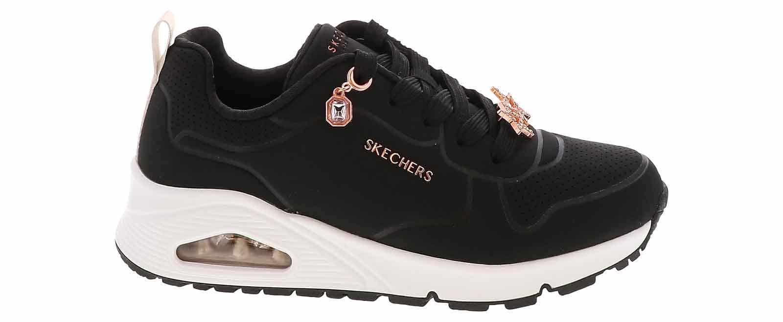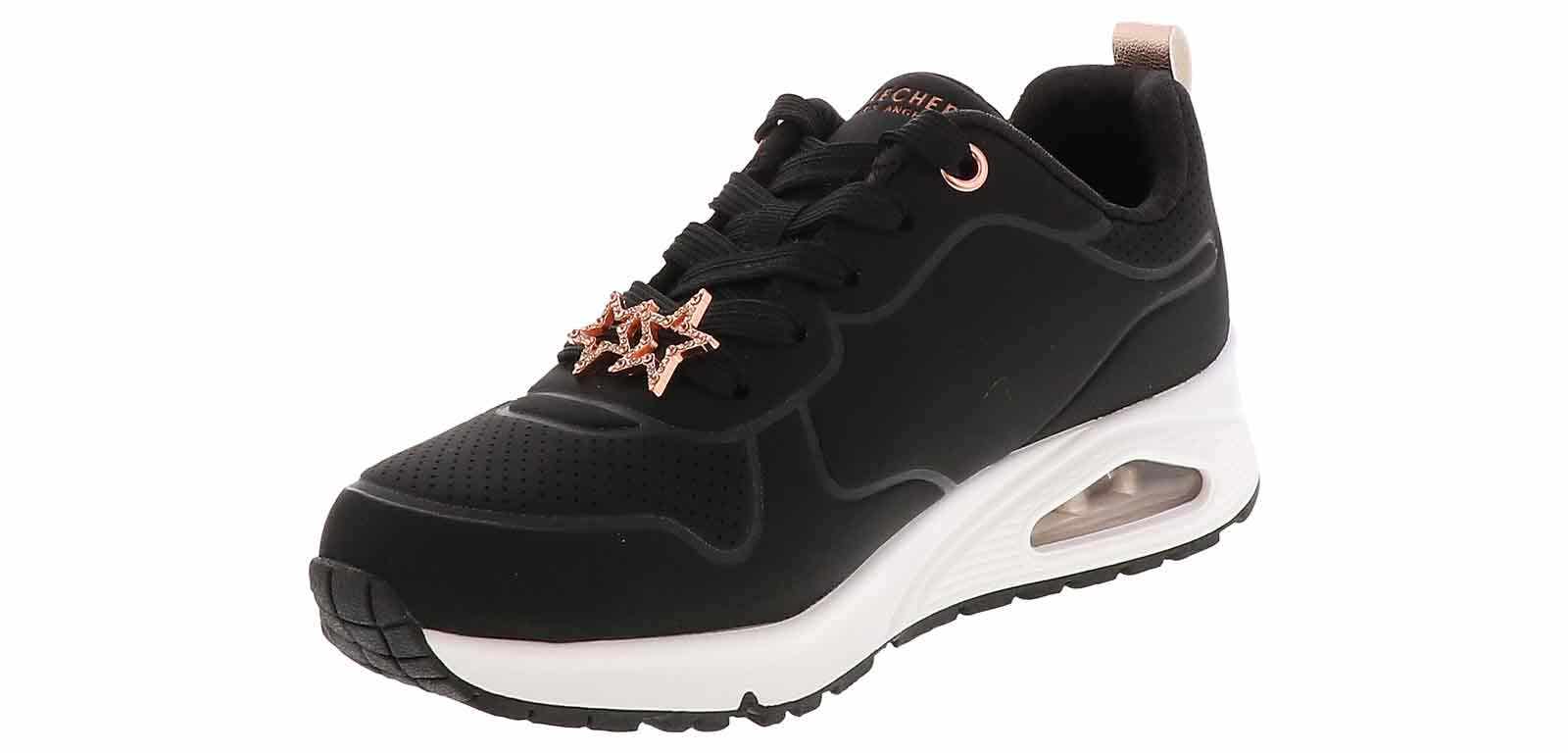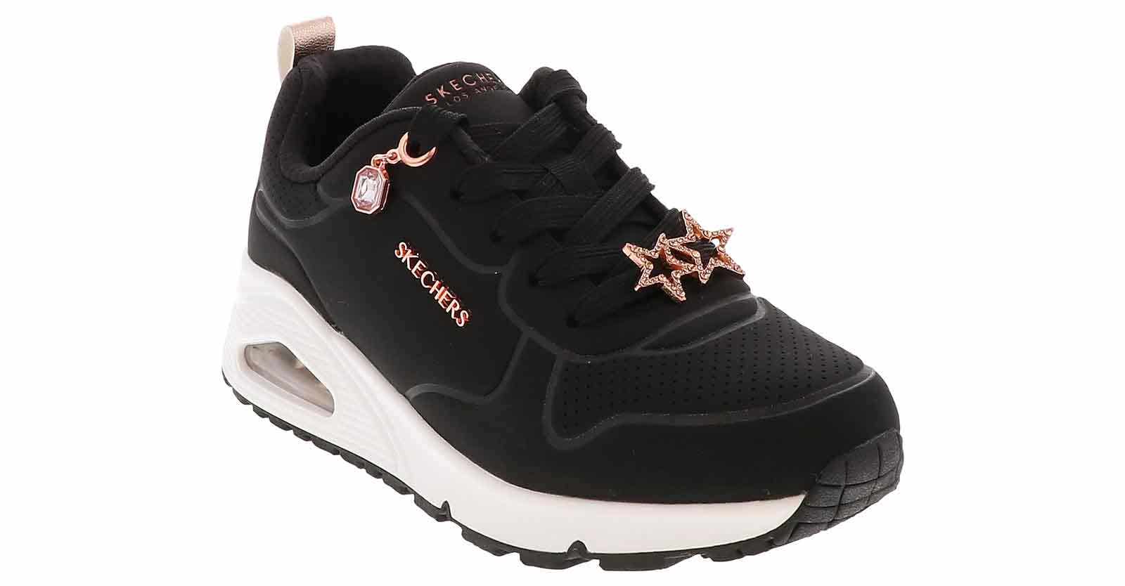 Elevate her style with the Skechers Uno Gen1 Trendy Jewels Youth Girls’ (13-6.5) Athletic Shoe. This lace up sneaker features a durable outsole for a supportive fit. The memory foam insole and padded collar will keep her comfortable throughout the day. She will love running in the Skechers Uno Gen1 Trendy Jewels Youth Girls’ (13-6.5) Athletic Shoe!