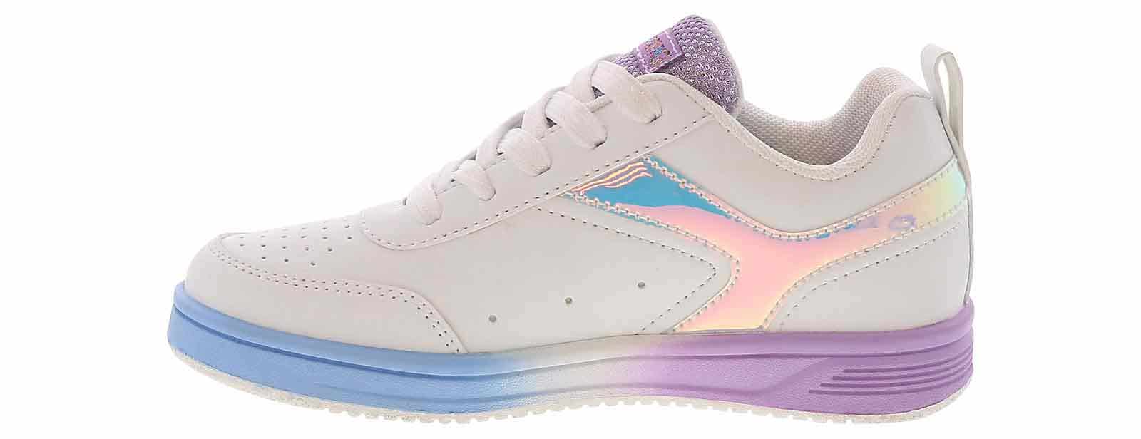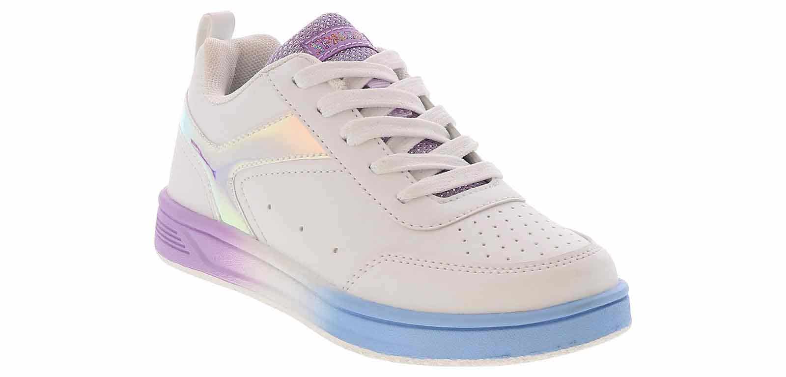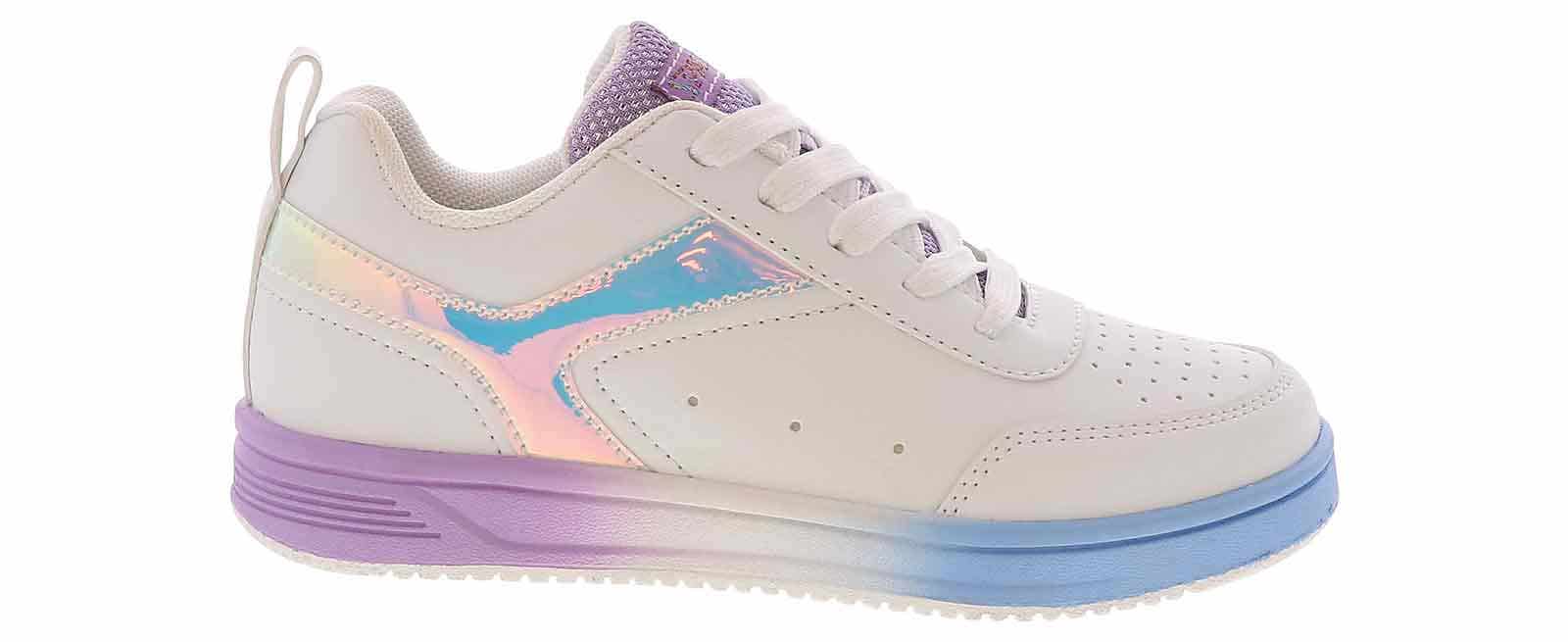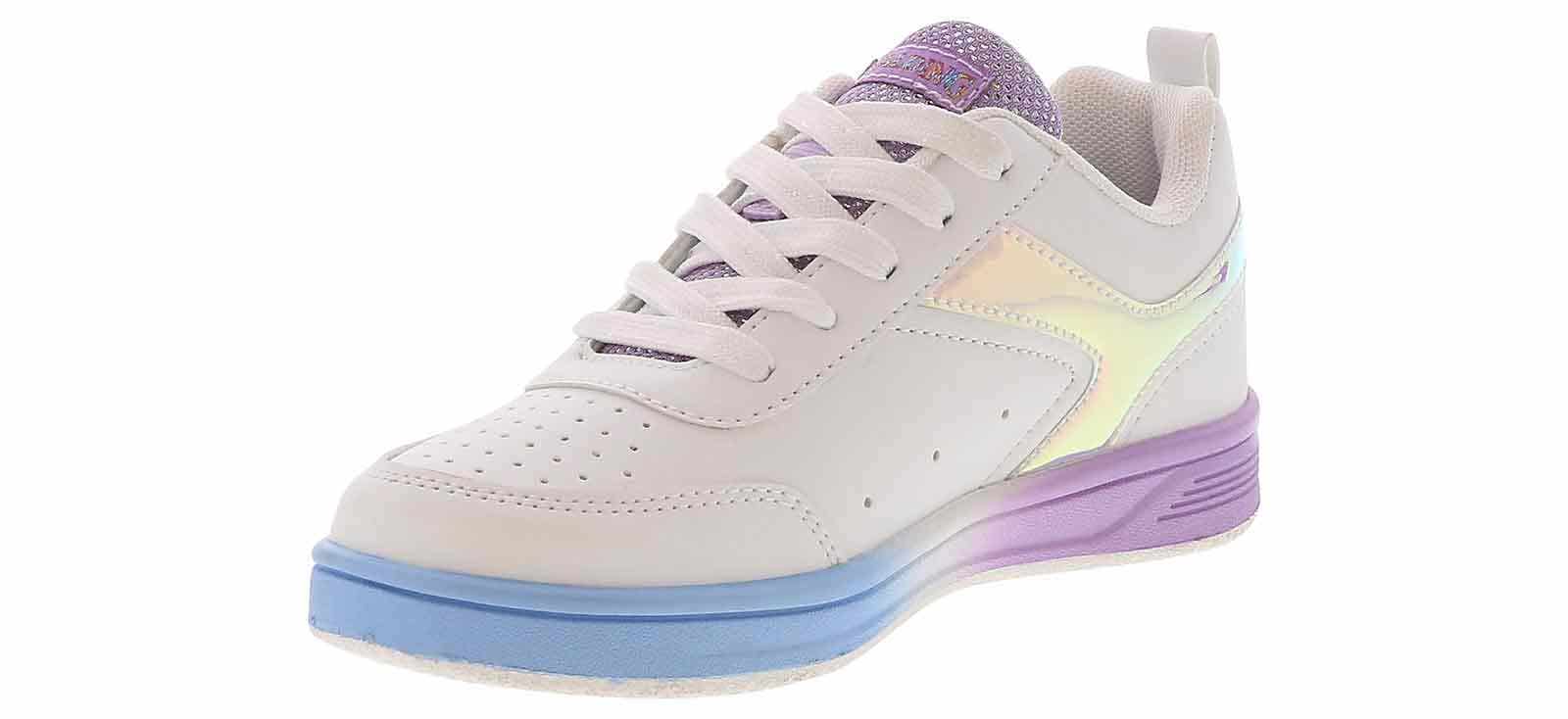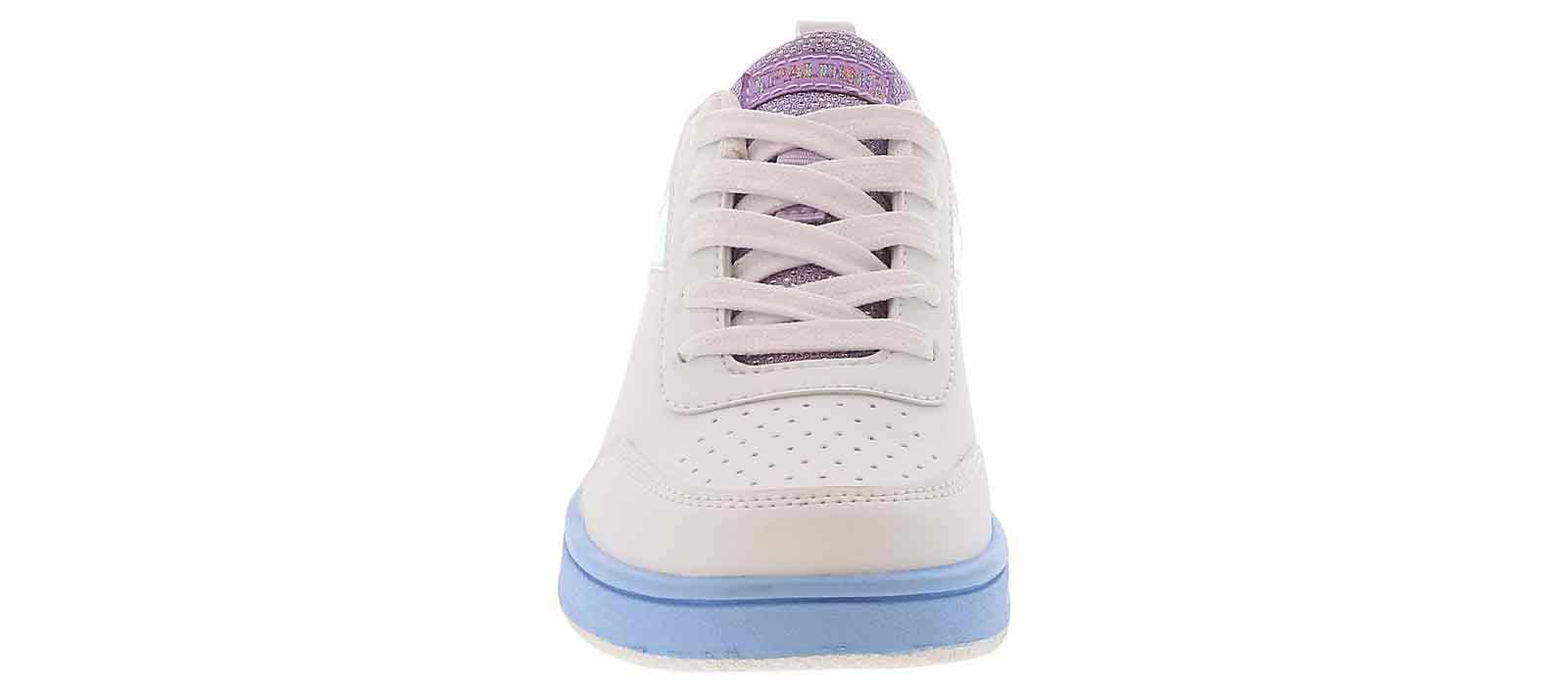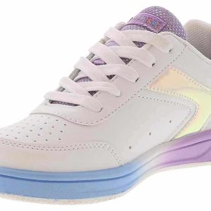 Keep her comfortable in a classic style with the Spalding Melanie Youth Girls’ (13-6) Court Sneaker! This lace-up shoe features a leather upper with metallic detail. The cushioned footbed delivers soft padding, while the rubber outsole is flexible and supportive. She can take on her favorite activities wearing the Spalding Melanie Youth Girls’ (13-6) Court Sneaker!