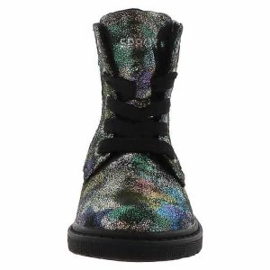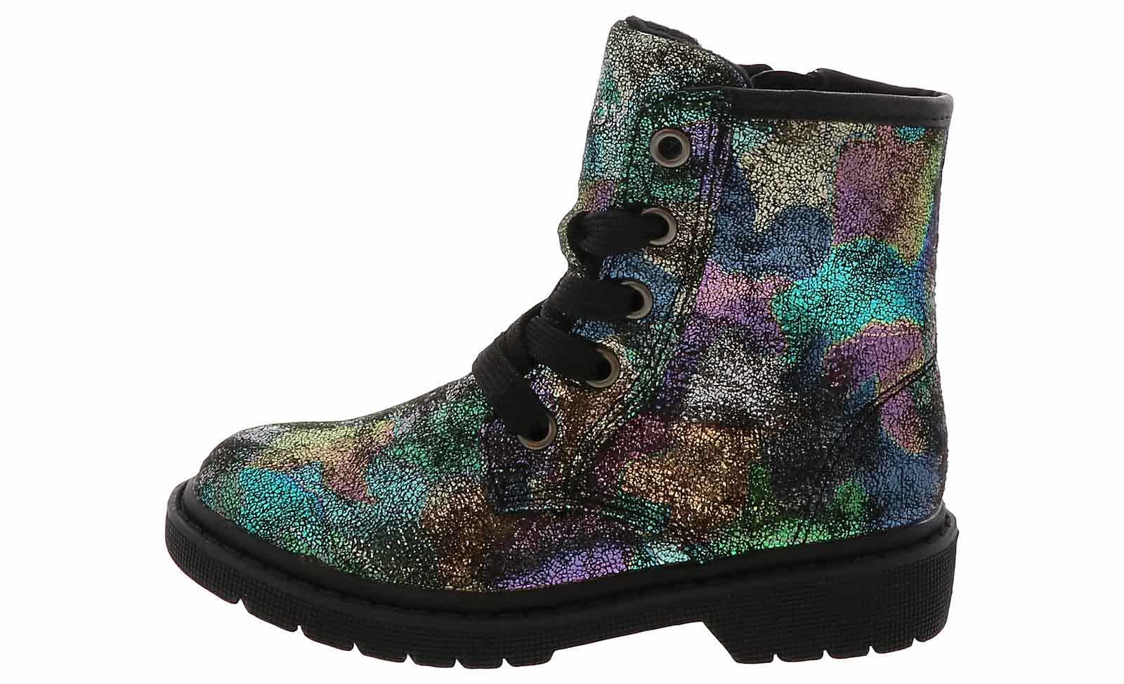 Keep your trendy girl in style with the Sprox Lil Jane Toddler Girls’ (7-10) Combat Boot. This style has a synthetic upper with colorful shimmer details and a lace-up closure with a side zipper for easy on and off. The rubber outsole is durable, and the cushioned insole will keep her comfortable all day!