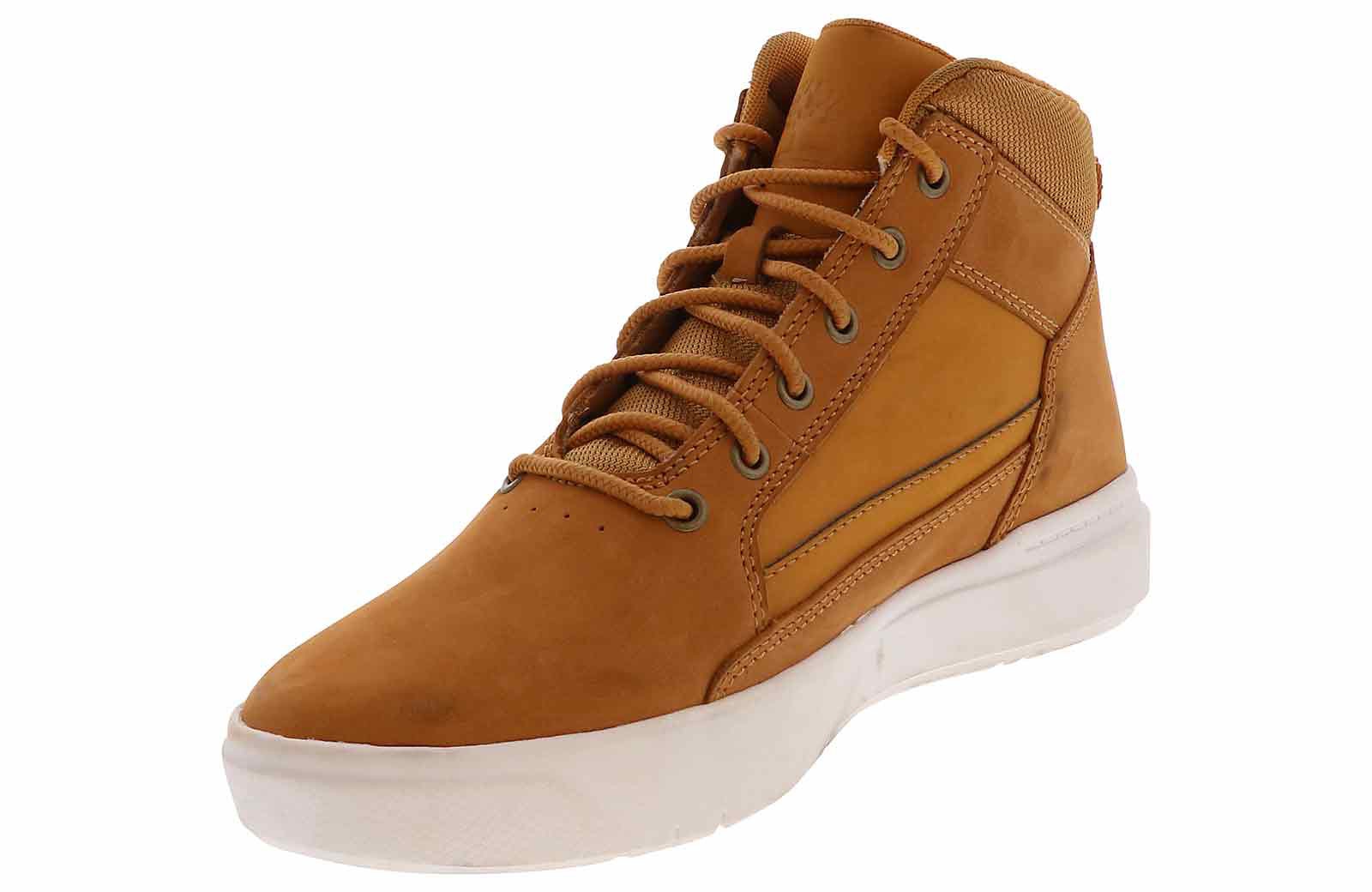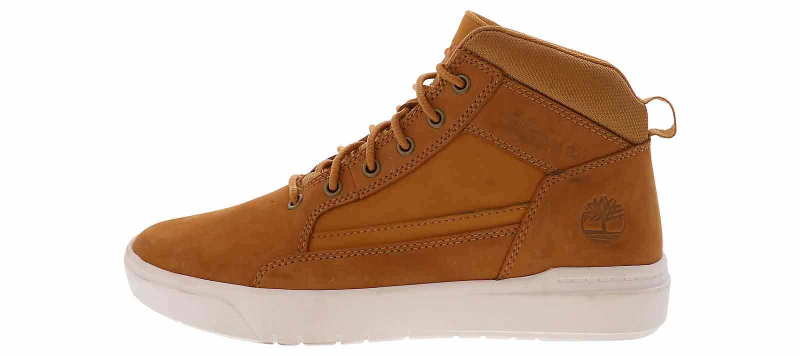 Raise your style bar with the Timberland Allston Men’s Mid Top Fashion Sneaker. A two-tone design gives a fashionable lift to the lace-up sneaker, lined with fabric and a leather upper. A ground-contact EVA midsole and sole ensure lightweight yet supportive footing.