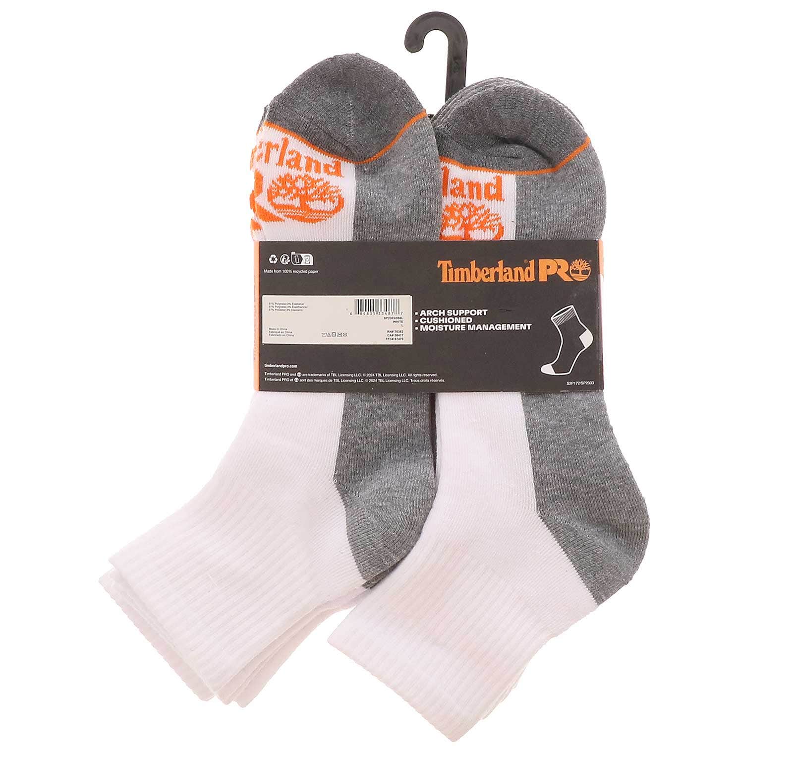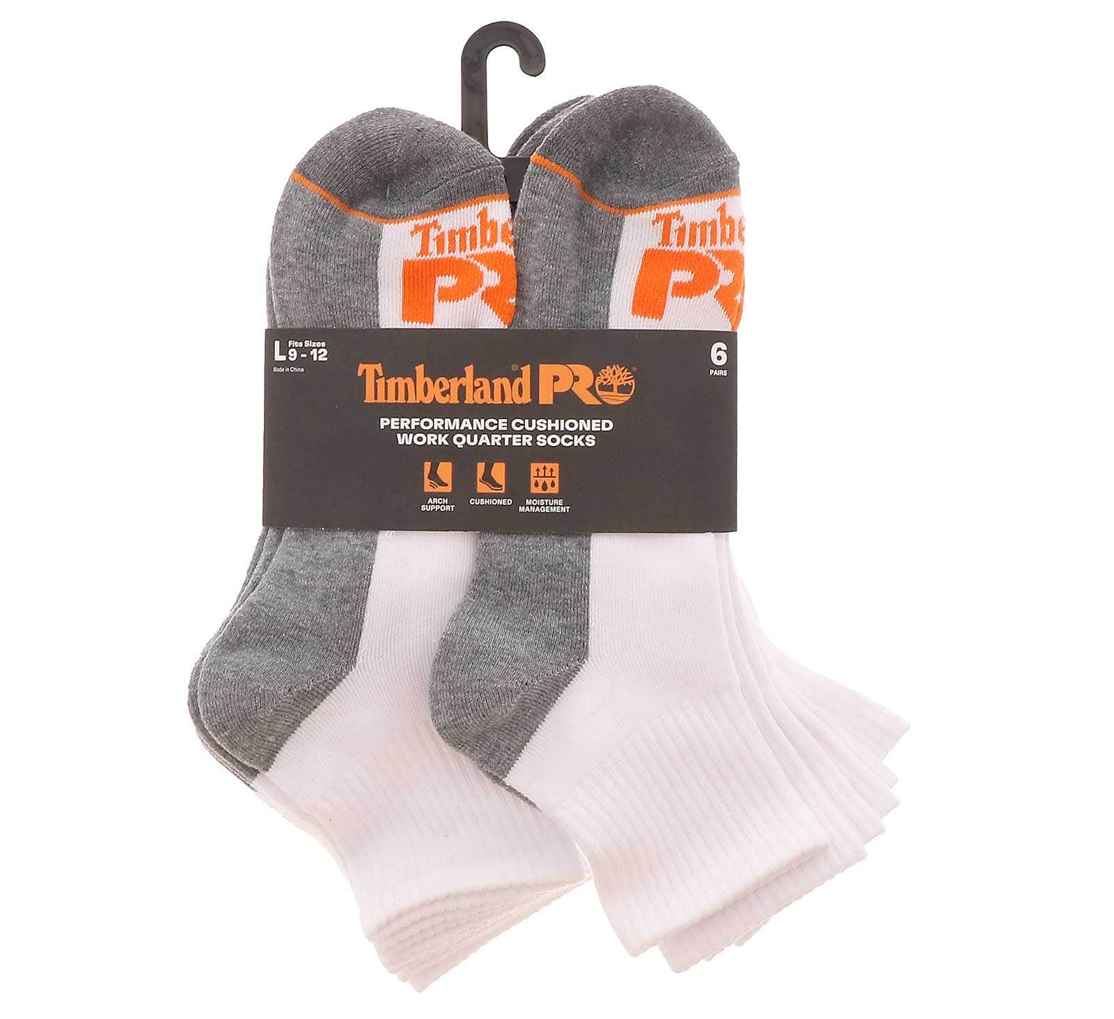 When your feet are on the job all day, you need socks that can keep up. You need the Timberland Pro Performance Cushioned 6PK Men’s Work Quarter Socks. Designed to hit quarter length, these socks provide full coverage and support with arch support and moisture management fabric to keep your feet comfortable all day, allowing you to work hard without distractions.