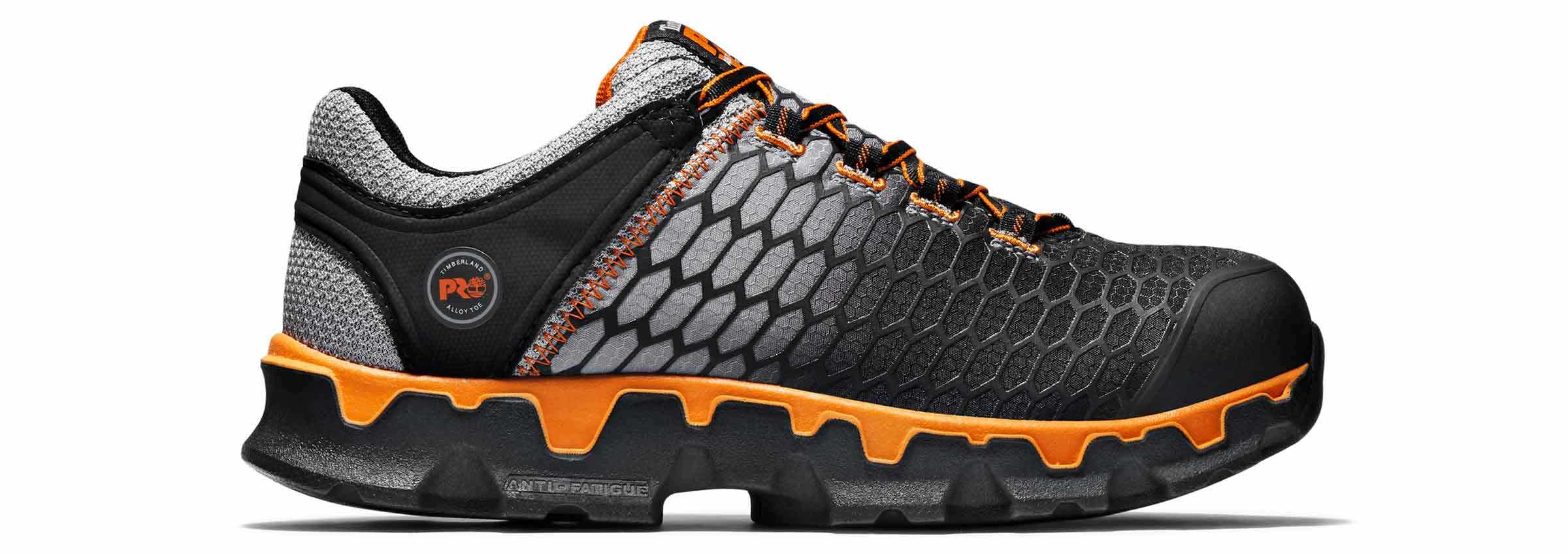 Keep your feet feeling comfortable in these Timberland Pro Powertrain work shoes! This style features a nylon and mesh fabric upper with an Alloy Toe for protection. The Timberland Pro Powertrain work shoes have a mesh lining with an antimicrobial treatment and an oil and slip resistant rubber outsole.