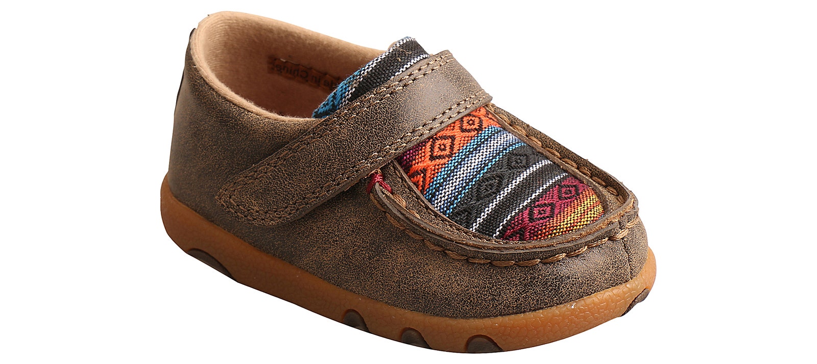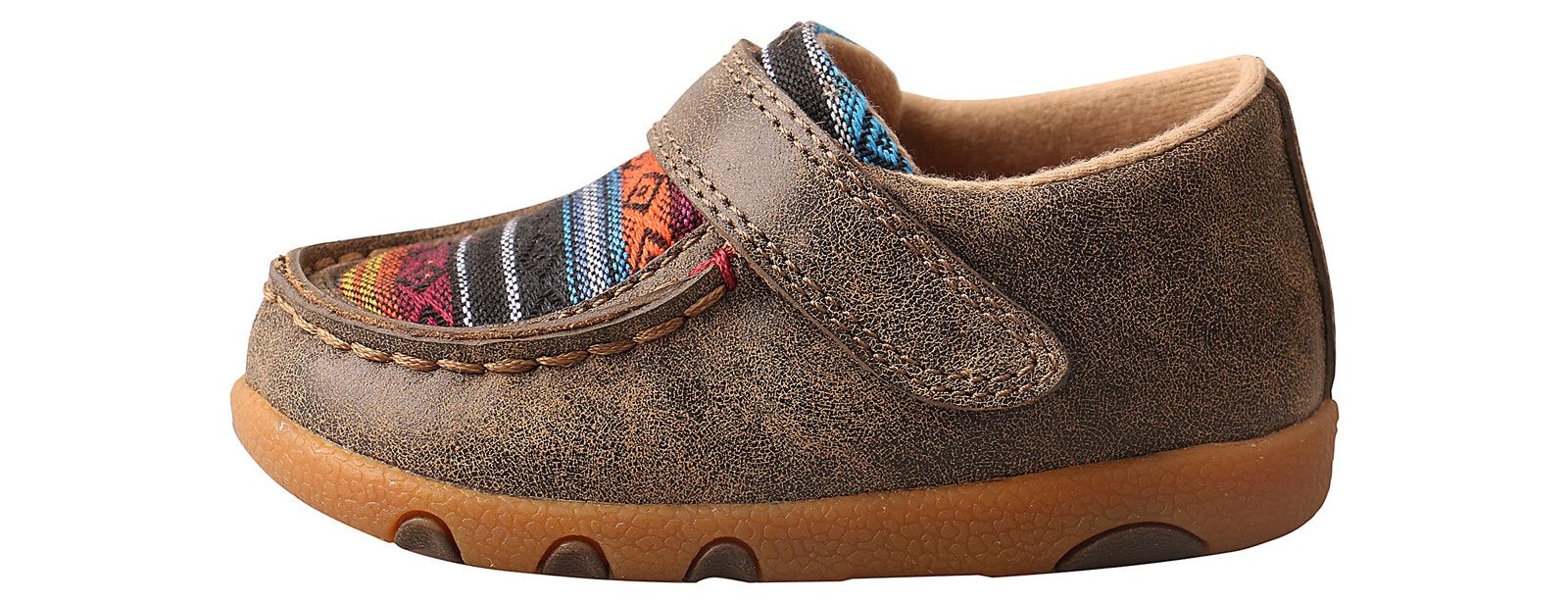 Handcrafted in full-grain leather and durable fabric, with the same components you’ll find in any other Twisted X driving moc collection. Your little one will experience the same superior comfort with the added benefit of a wider lightweight EVA footbed and a durable molded rubber outsole which provides improved stability and support as they grow.