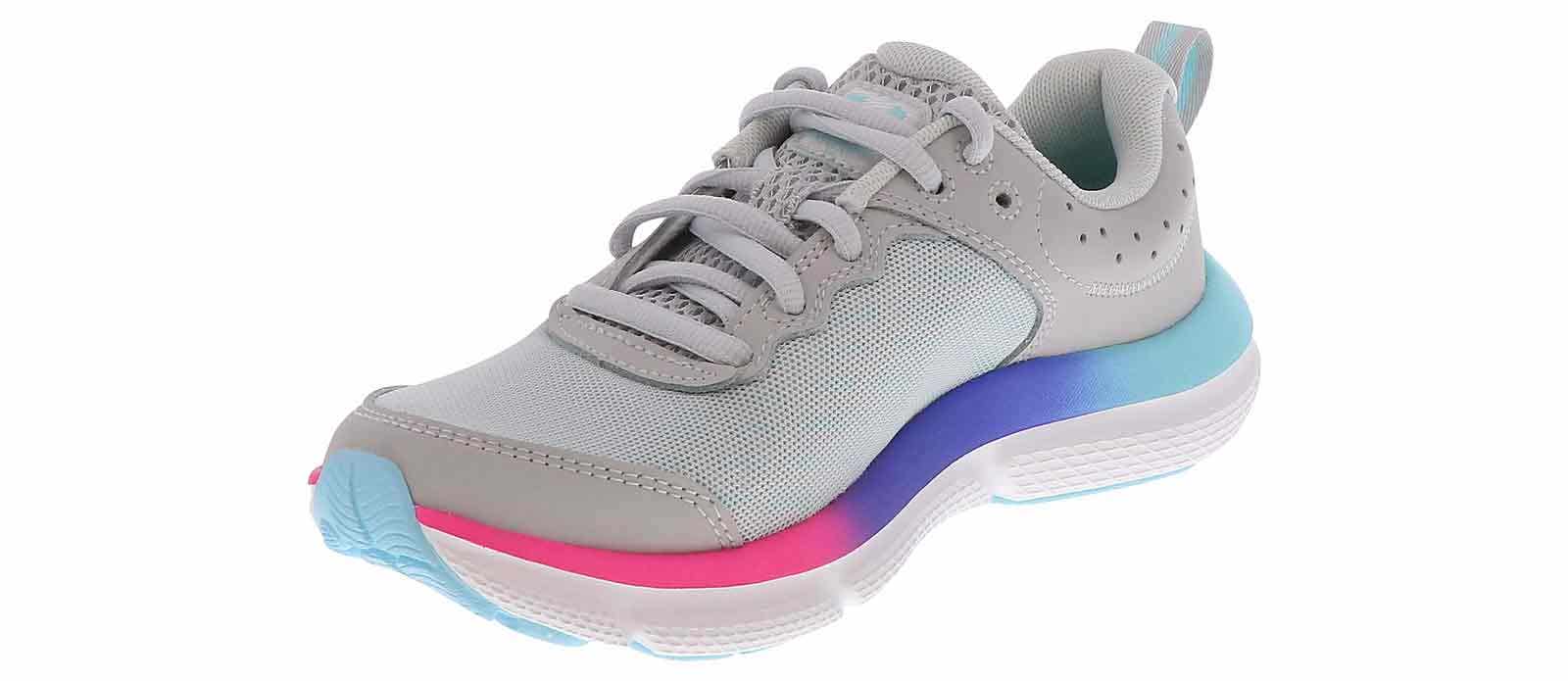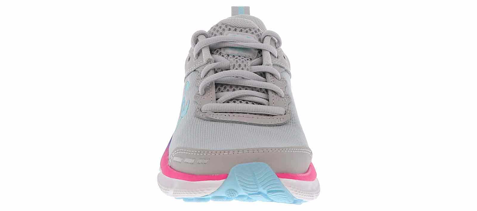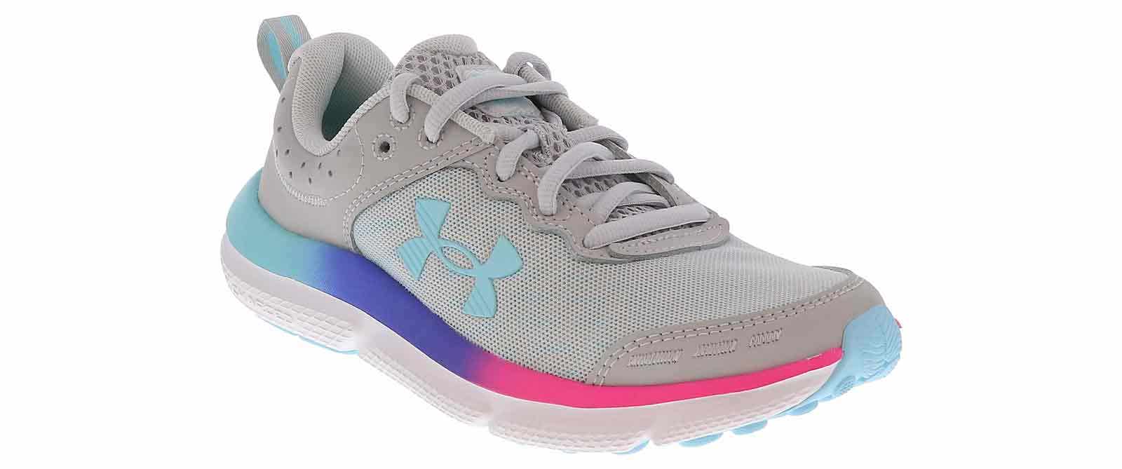 The Under Amour Assert 10 Junior Girls’ (4-7) Running Shoe will be a hit for your active child! The secure lace up closure and padded collar ensure her feet stay comfortable with each step. The breathable mesh upper and lightweight rubber outsole promises ease and traction when she runs wearing the Under Amour Assert 10 Junior Girls’ (4-7) Running Shoe.