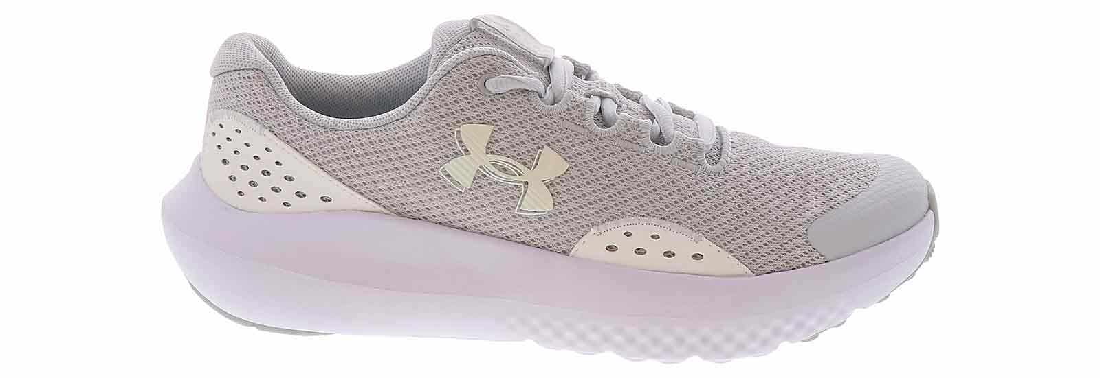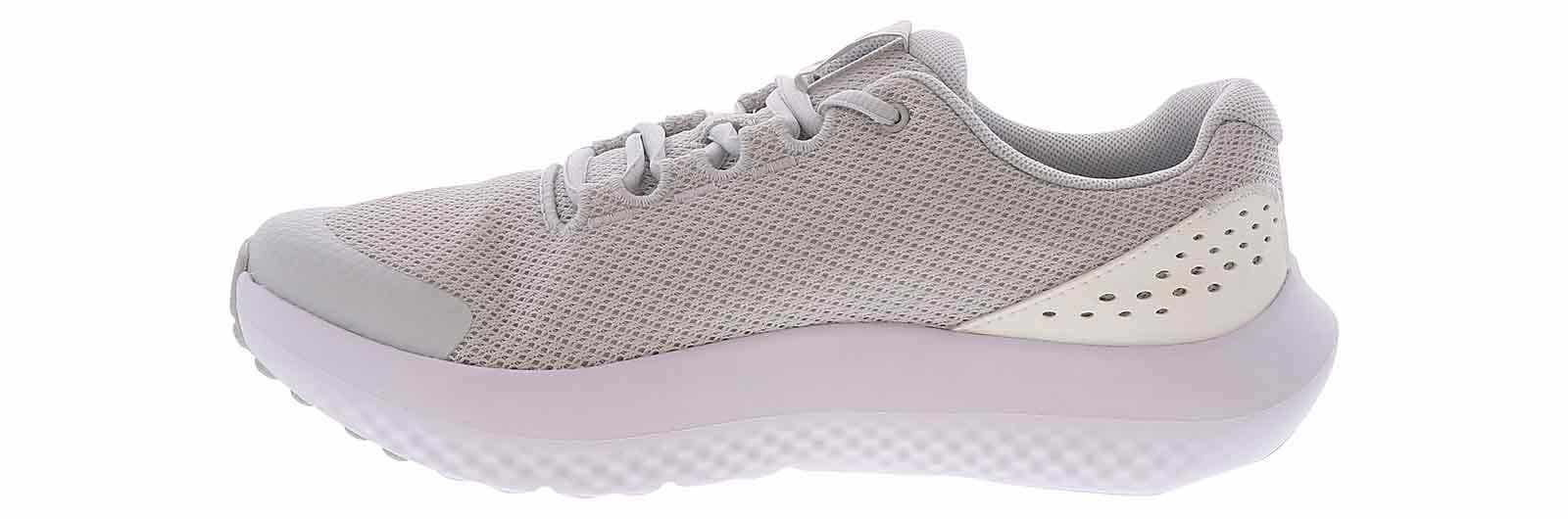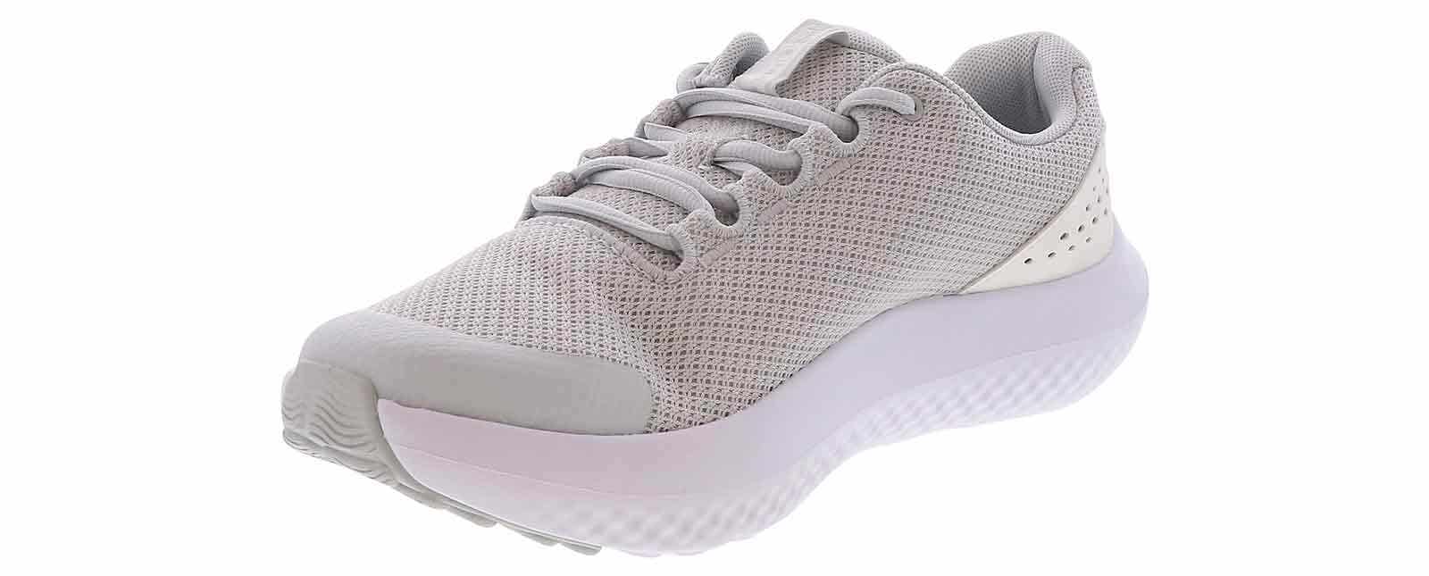 The Under Armour GGS Surge 4 Girls’ (4-6.5) Running Shoe will be a hit for your active child! The secure lace-up closure and padded collar ensure her feet stay comfortable with each step. The breathable mesh upper and lightweight rubber outsole promises ease and traction when she runs wearing the Under Armour GGS Surge 4 Girls’ (4-6.5) Running Shoe!