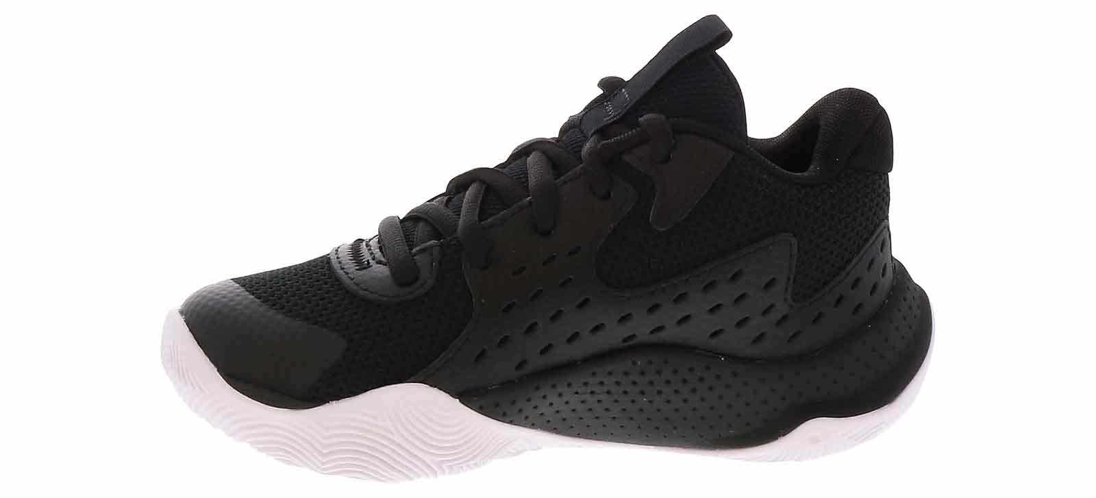 Watch him soar to new heights on the court with the Under Armour Jet 23 Boys’ (11-3) Basketball Shoe! This style ensures the perfect balance of support and comfort with its secure lace-up closure, cushioned insole, and padded ankle collar. The durable rubber outsole allows him to play his best on the floor with its reliable traction and grip. Let his hoop dreams take flight with the Under Armour Jet 23 Boys’ (11-3) Basketball Shoe!