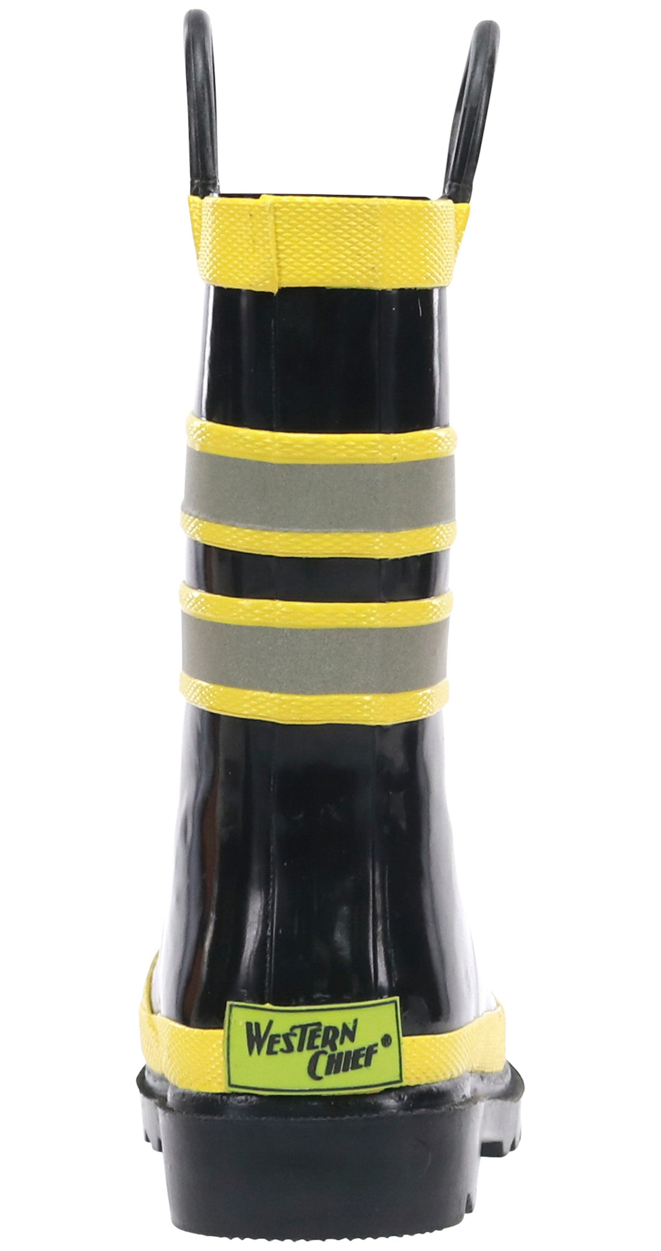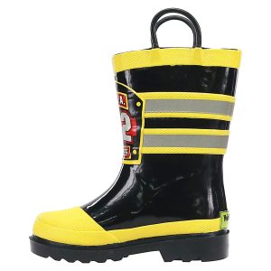 A Western Chief FDUSA Firechief Youth Boys’ Rain Boot is fun for outdoor puddle stompers. Easy pull-on handles make is quick and easy to get out the door when getting dressed. The cushioned insole adds padding to each of their steps, while the rubber outsole gives enhanced traction on slippery surfaces. Classic fireman boots that are favorite and will get worn again and again.