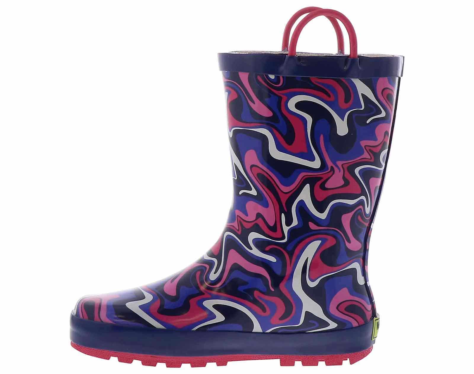 Let your little one have fun and make a splash with the Western Chief Hydro Swirl Youth Girls’ (11-4) Rain Boot! These rainboots feature convenient pull loops for easy on and off as well as a rubber outsole for traction on slippery surfaces. With the Western Chief Hydro Swirl Youth Girls’ (11-4) Rain Boot, she can stomp puddles in style while you can easily wipe them clean after a hard day of play in the rain and mud.