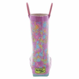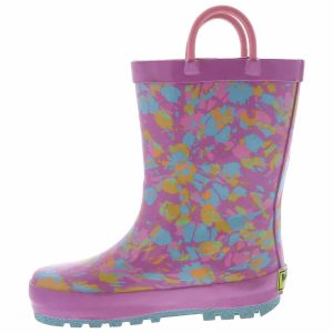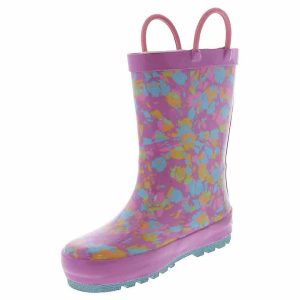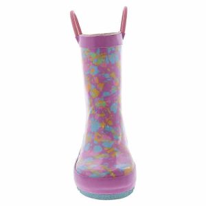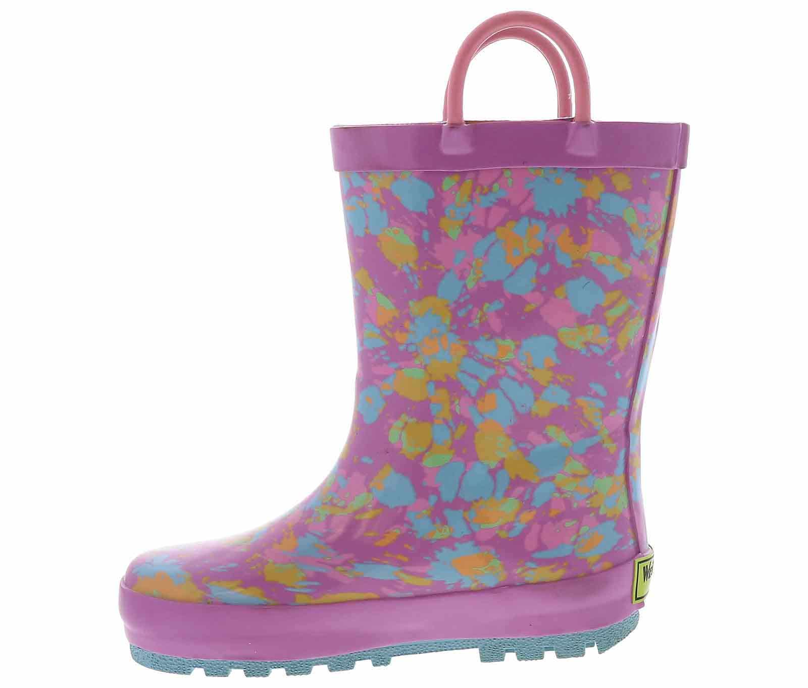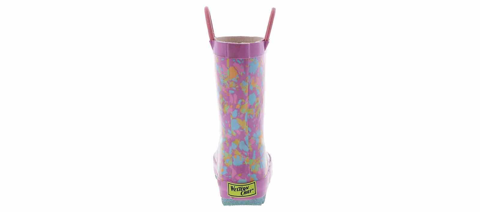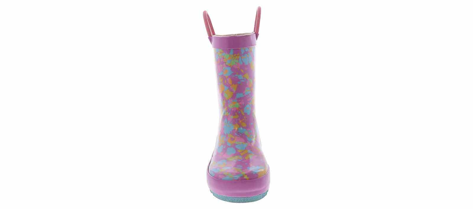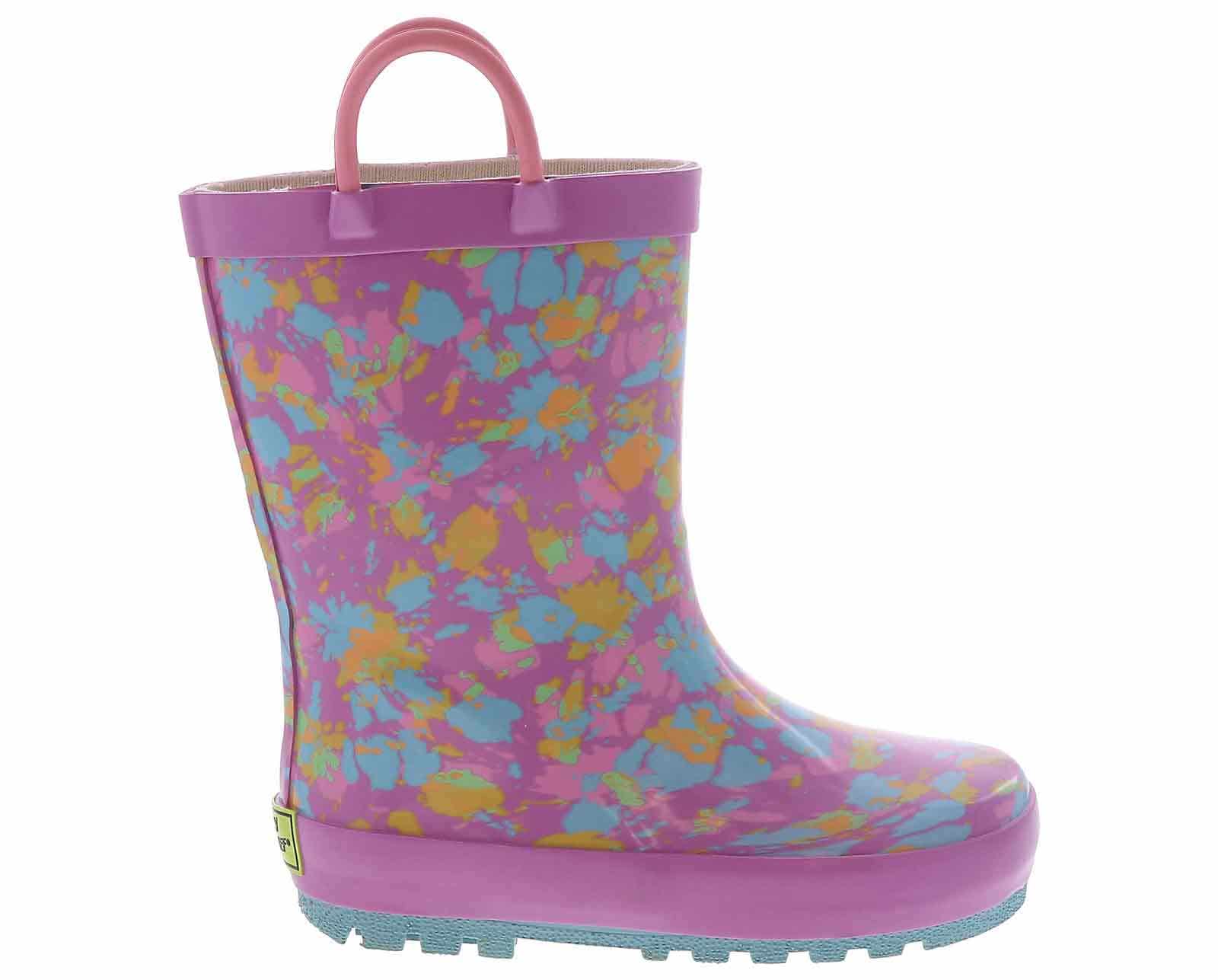 Give her the bright and cheerful rainboots she wants for gloomy days! The Western Chief Sherbert Rainbow Tie Dye Toddler Girls’ (2-12) Rain Boot has a pink outsole and looped handles for ease and comfort. These boots are easy to clean after a day of play. Easy pull-on handles make it quick and easy to get out the door when getting dressed. The cushioned insole adds padding to each of their steps, while the rubber outsole gives enhanced traction on slippery surfaces.