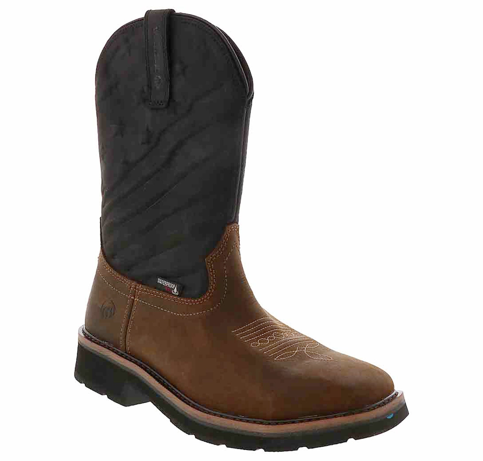 Make a statement with the Wolverine Rancher Americana Boot Men’s Steel Toe Work Boot! This slip-on shoe features a waterproof leather upper for a secure fit. The slip-resistant and oil-resistant durable outsole will keep you supported throughout the day. Step with confidence in the Wolverine Rancher Americana Boot Men’s Steel Toe Work Boot!